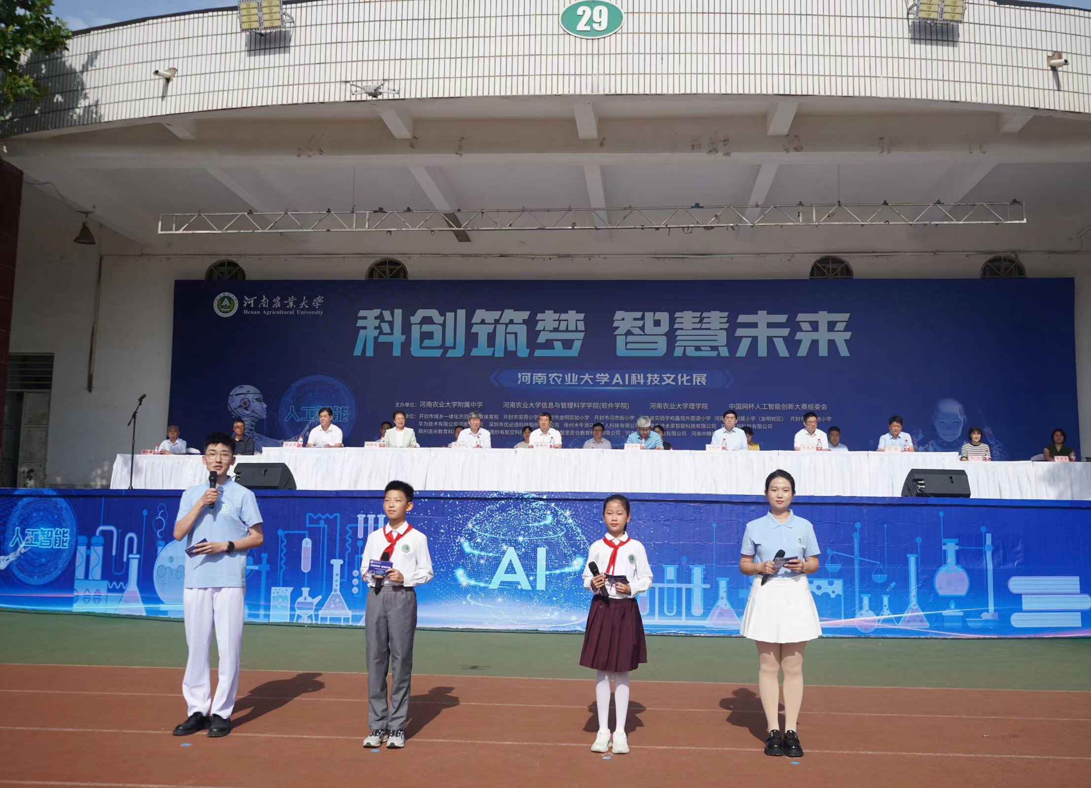 本网讯(通讯员 吴溢洋 陈通) 为了弘扬科学家精神,激发大小学生校园创新活力。5月31日上午,太阳城官网 携手太阳城官网 附属小学、信息与管理科学太阳城官网 (软件太阳城官网 )、中国网杯人工智能创新大赛组委会于文化路校区操场举办“科创筑梦,智慧未来”AI科技文化节。