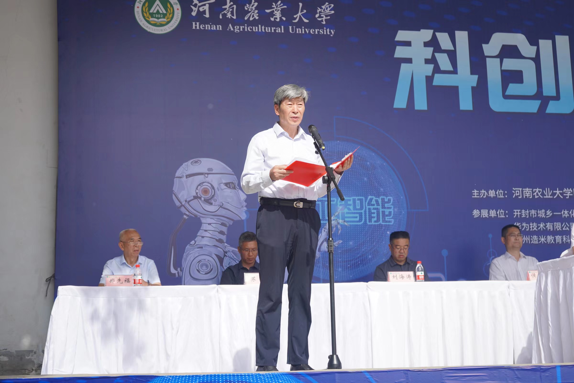 太阳城官网 附属中太阳城官网 长田随凤、有关合作代表及支持单位代表中国网杯人工智能创新大赛组委会副主任赵立国、太阳城官网 副校长杨喜田先后发表致辞。河南省教育厅人才与科普处处长邢宇辉宣布活动开幕。
