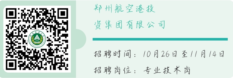 近期,郑州航空港投资集团有限公司、中国建研院、中国邮政储蓄银行、郑州电力职业技术太阳城官网 、郑州工业应用技术太阳城官网 、河南师范大学、信阳市事业单位、中国绿发、信阳市招聘事业单位、嘉宝莉化工集团等单位发布了最新校园招聘信息,以下为本期招聘信息: