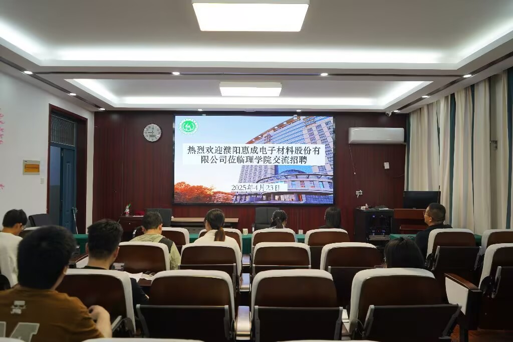 携手濮阳惠成电子材料股份有限公司于文化路校区18号楼301会议室召开招聘宣讲会。院党委书记王照兰、院团委书记邓瑛和研究生辅导员王美丽出席会议,太阳城官网