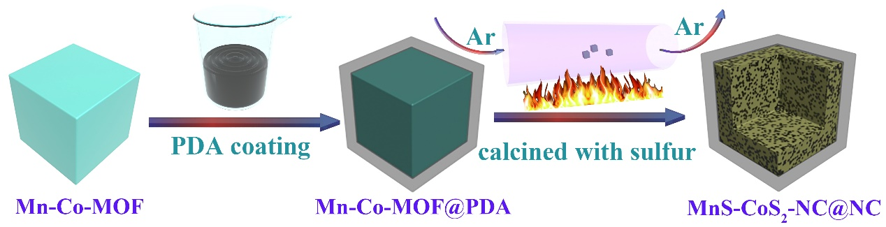 Figure 1. Schematic illustration of the synthesis of MnS-CoS2-NC@NC.
