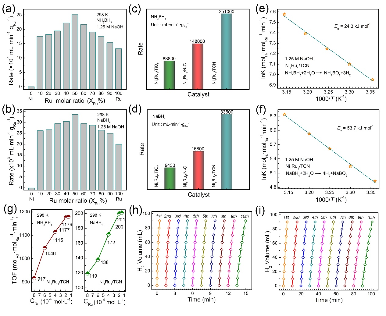 图2 NiRu/TCN催化剂对于氨硼烷水解的催化性能