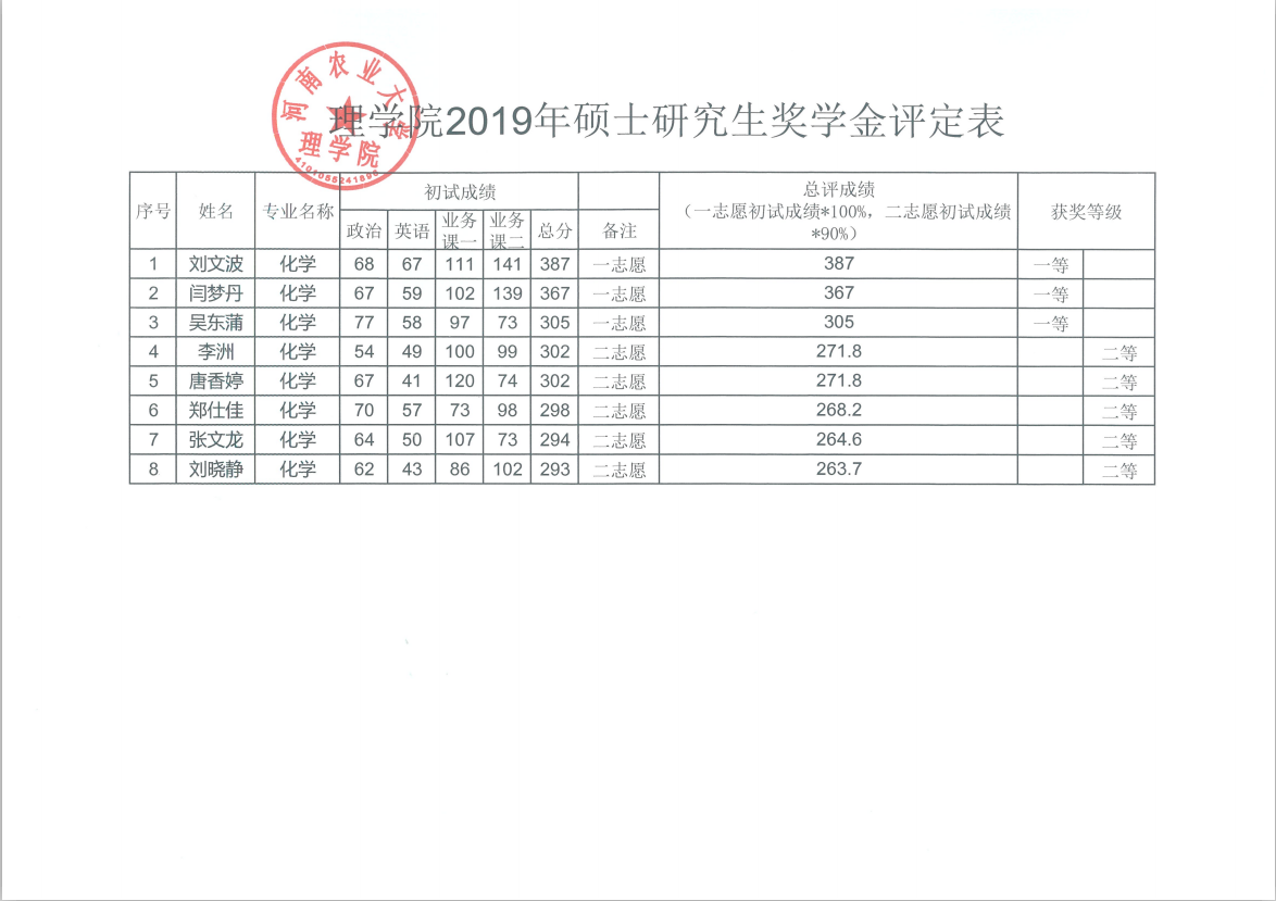 关于太阳城官网 2019级硕士研究生学业奖学金名单的公示