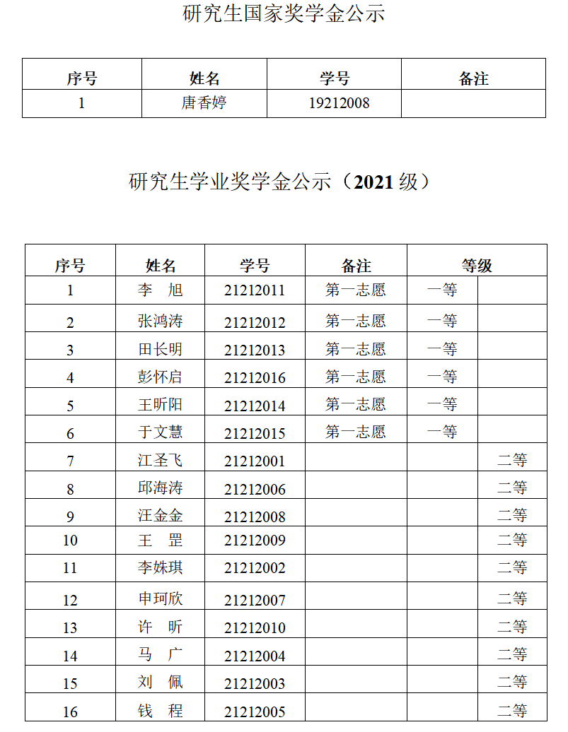 根据《河南省学生资助管理中心关于做好2021年高校学生国家奖助学金评审发放工作的通知》(豫教资〔2021〕45号)和《太阳城官网 研究生奖助学金管理办法》(校政研〔2018〕11号)文件精神,按照《太阳城官网 2021年研究生奖学金评定细则》和《太阳城官网 2021年研究生国家奖学金评定细则》的规定,现将研究生奖学金评审结果予以公示。