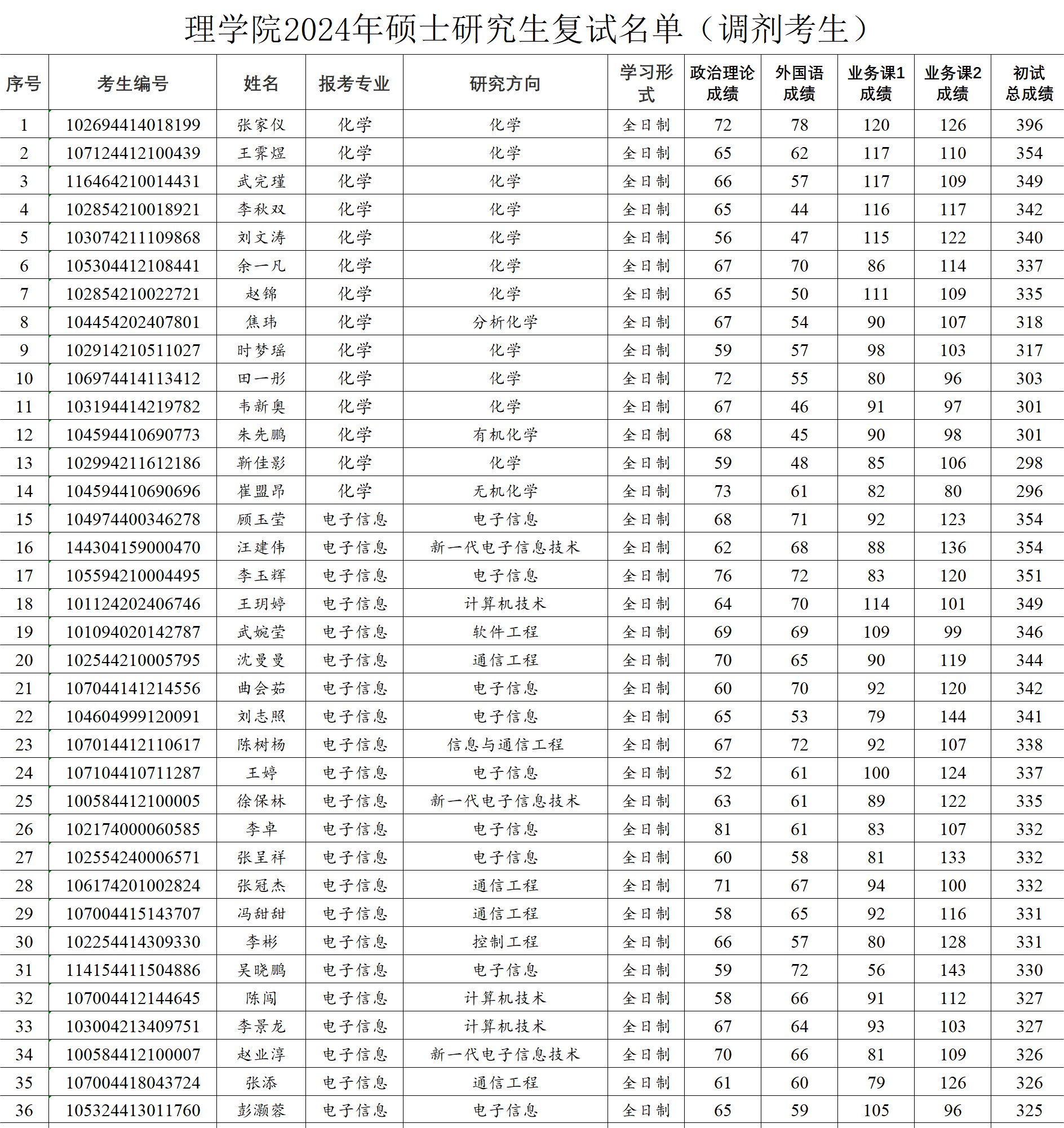 太阳城官网 2024年硕士研究生复试名单(调剂考生)