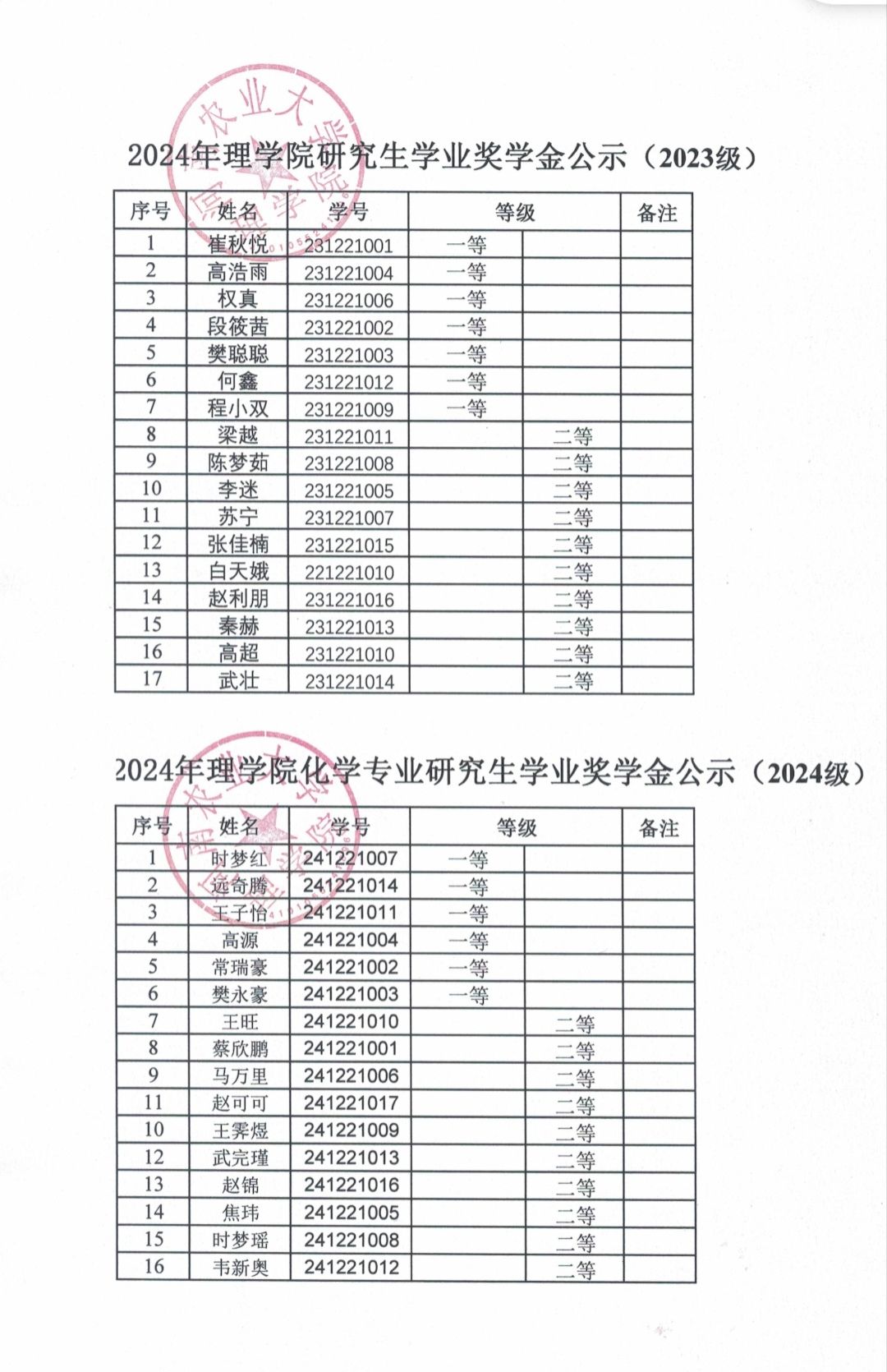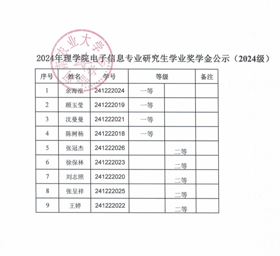 根据《太阳城官网 关于做好2024年研究生国家奖助学金评审发放工作的通知》和《太阳城官网 研究生奖助学金管理办法》(农大研〔2024〕3号)文件精神,按照《太阳城官网 2024年研究生奖学金评定细则》的规定,现将研究生奖学金评审结果予以公示。