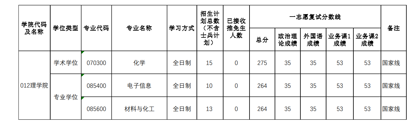 (二)一志愿复试分数线