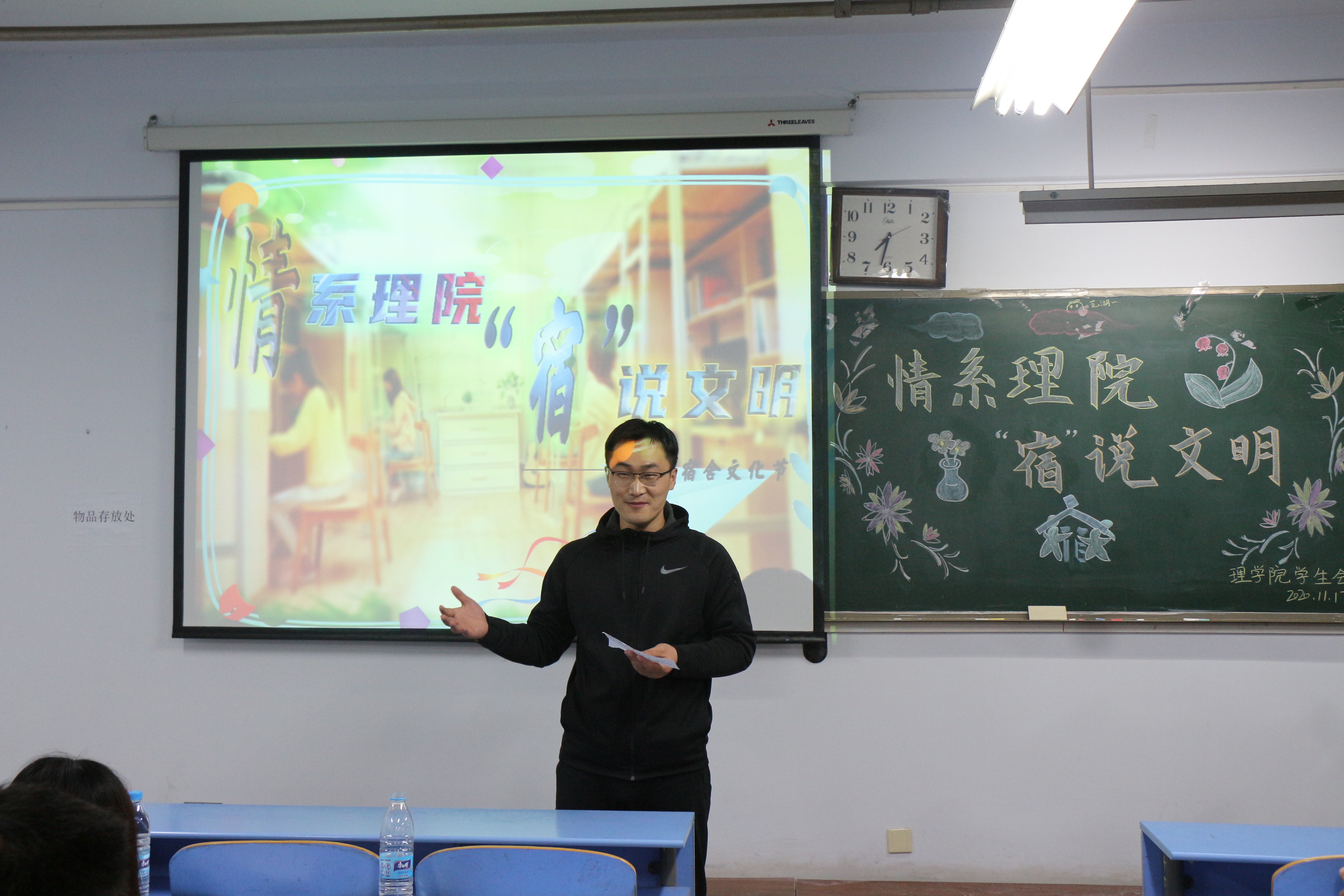 本次宿舍文化节活动分为宿舍装扮、线上评选和线下决赛三部分。经过太阳城官网 官方微信线上投票,共有九个寝室闯进决赛。参赛宿舍代表,以PPT的方式向现场观众介绍自己精心装扮的“小窝”,通过一张张优美的照片、精彩的演讲,向观众展现了不同主题和风格且温馨的小窝,让观众看到了宿舍成员之间的情谊和对美好生活的向往之情。比赛中间穿插演唱、相声等表演,将现场氛围推向高潮。经过激烈的角逐,来自桃李园2号楼的723寝室荣获此次宿舍文化节冠军。徐向楠为获奖寝室颁奖并合影留念。