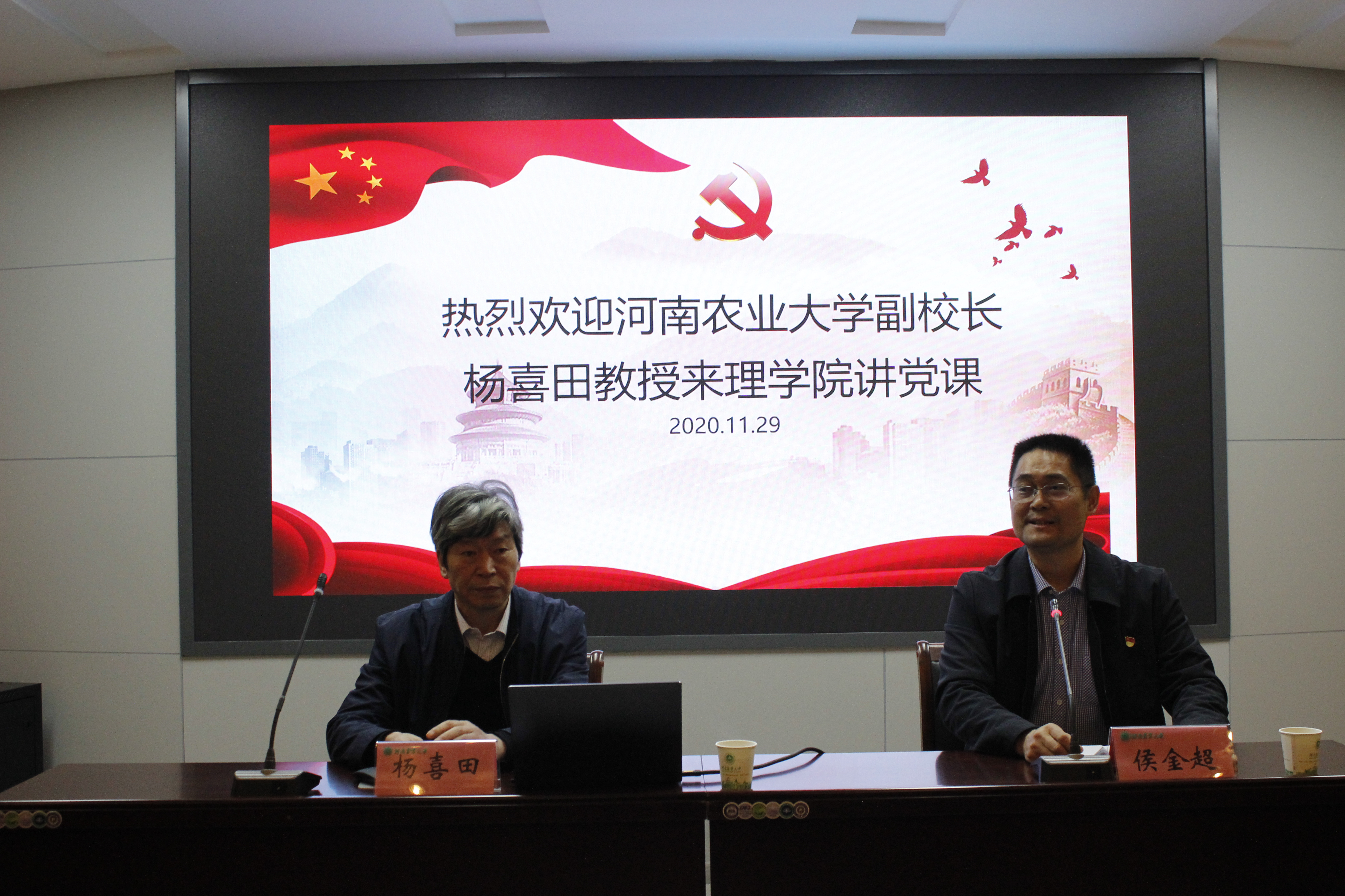 杨喜田从人类文明发展史、全球生态问题、习近平生态文明思想的内涵、生态环境问题的解决策略、中国共产党推进生态文明建设的实践等方面上了一堂生动的党课。他指出,要按照习近平总书记提出的生态文明发展理念,坚持可持续发展战略,治理环境、保护环境,共谋全球生态文明建设,彰显大国担当。他强调,作为农业高校,我们要积极行动起来,在经济结构提质行动、生态功能提升行动、国土绿化提速行动、环境治理提效行动中展现新作为新担当。