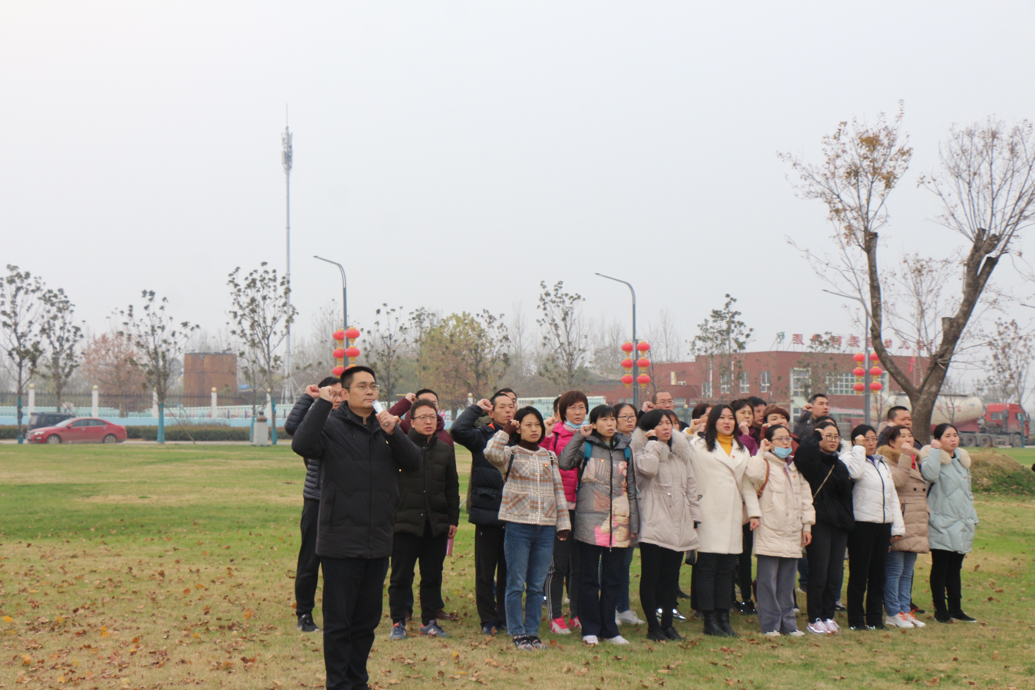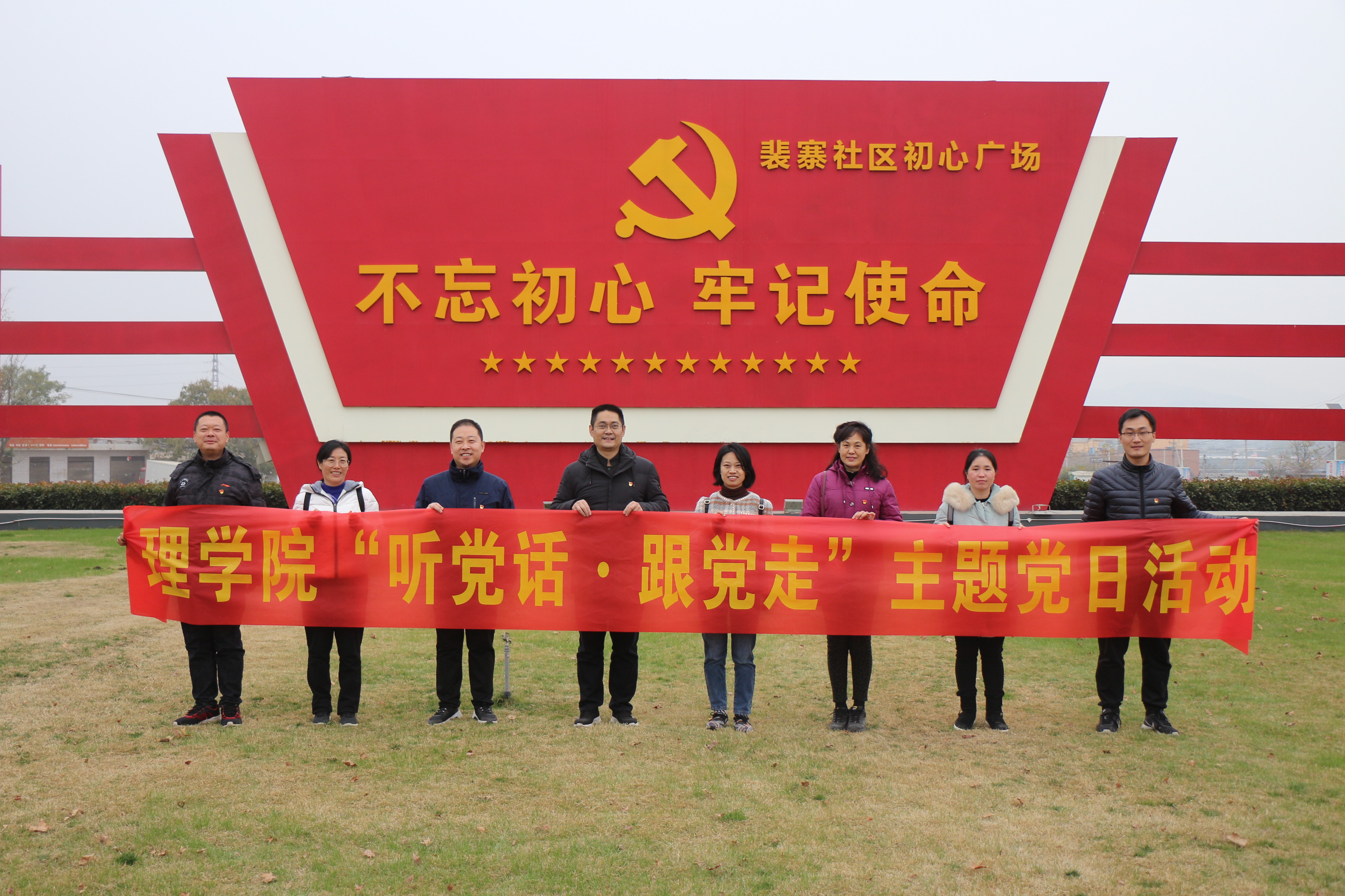 党委书记侯金超带领教工党员在裴寨社区初心广场上重温入党誓词。