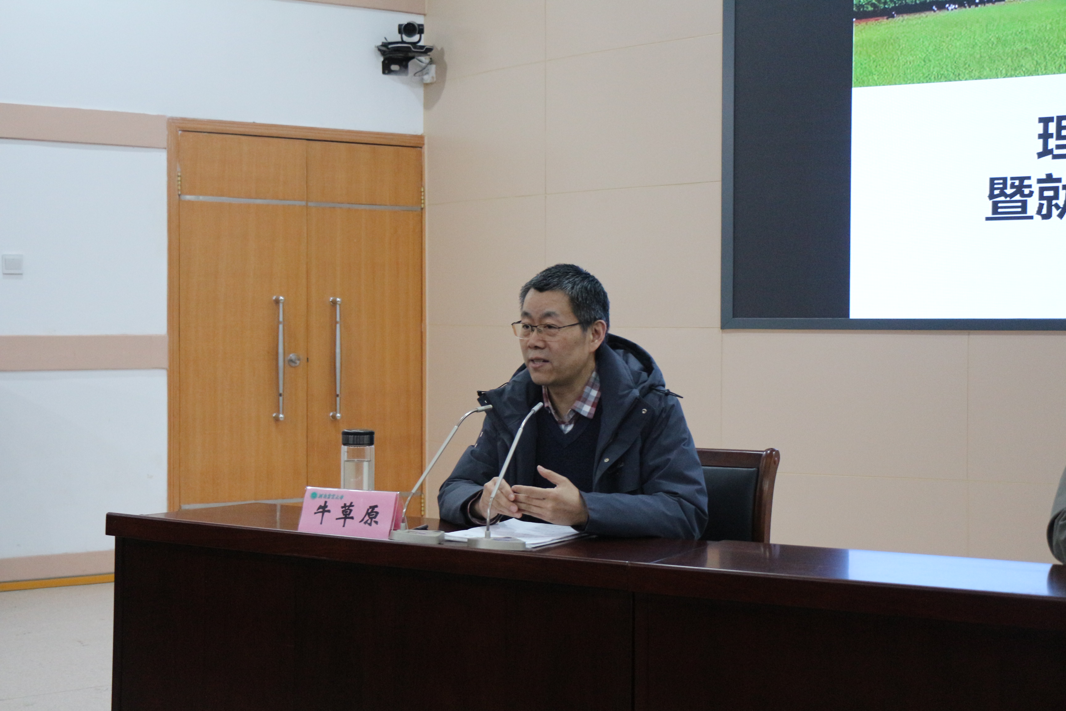 会议伊始,牛草原提出为什么要考研的问题,引发毕业生深思与讨论。他通过现场提问和讲述自己亲身经历的方式,深刻解读了现代大学生考研的原因。接着,他从深度了解报考院校的招生流程、报考太阳城官网 要从导师和太阳城官网 的实力考虑、确保调剂保底等方面详细讲解了如何考上研究生。李丹宣读了太阳城官网 就业工作十项措施和考研就业工作奖励制度。最后,侯金超作总结讲话。他强调考研学生要提前做好复试准备,就业学生要提前做好应试准备,在接下来的校园生活中毕业生若遇到困难及时找老师沟通交流、解决困难。