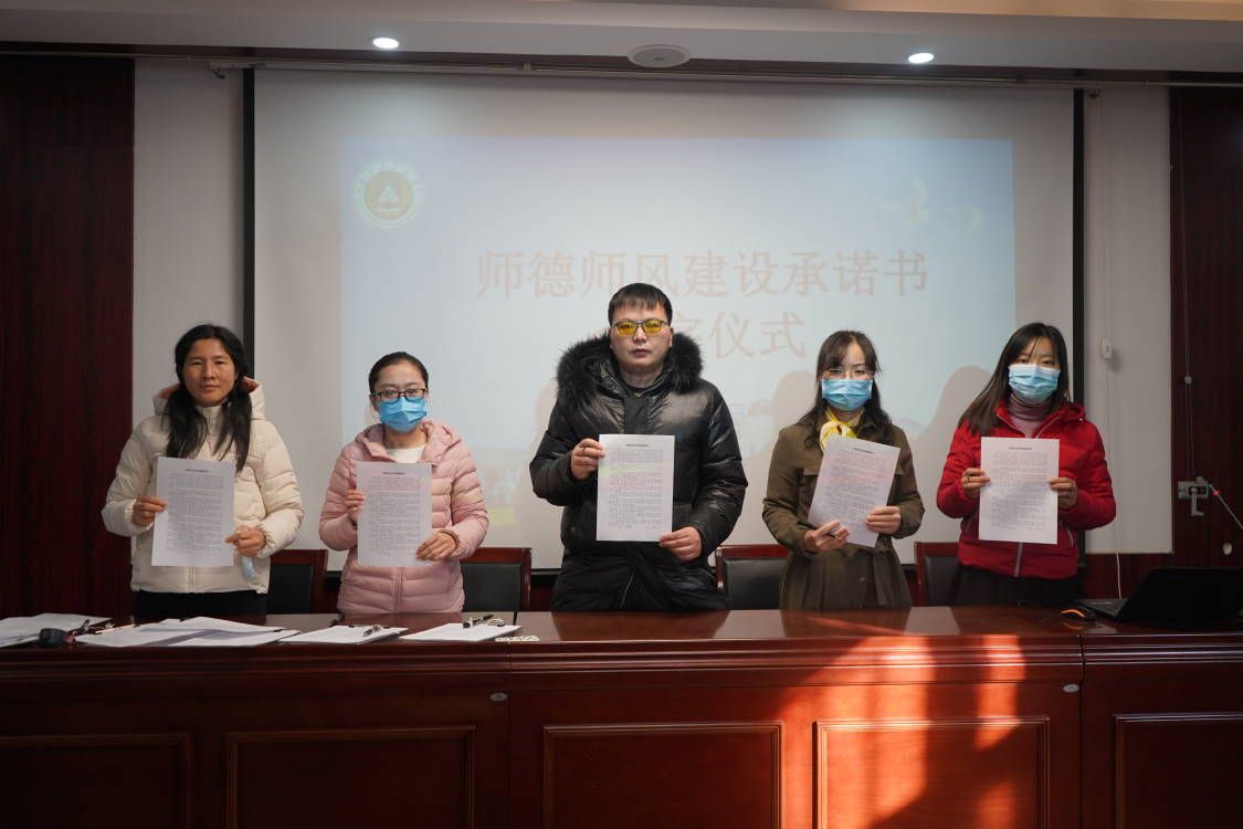 太阳城官网 开展了师德师风及本科教学突发事件应急预案培训,并进行师德师风建设承诺书签字仪式,教师代表认真阅读承诺书内容,郑重地签下自己的名字。