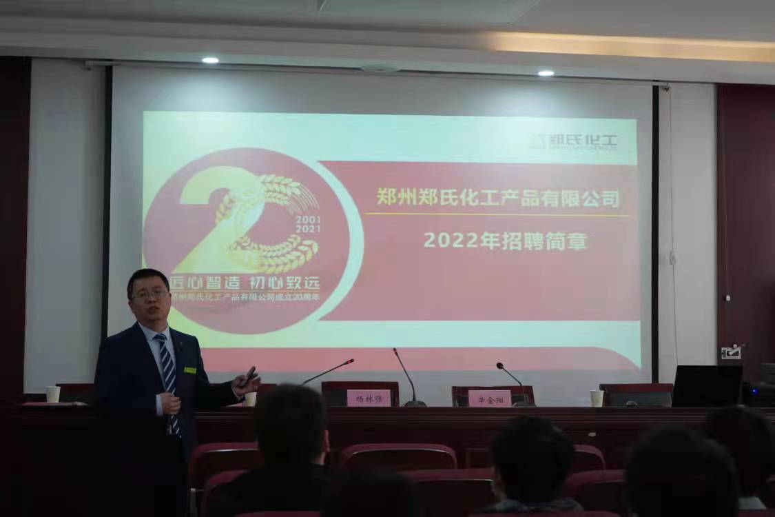 此次招聘会由郑州郑氏化工产品有限公司人力资源部副总杨林强主讲。会议中,杨林强详细的介绍了公司资质、公司总况及其组织架构,列举了公司取得的各项成绩,介绍了公司的顶级专家团队和各种各样的活动,着重介绍了该公司计划招聘的职位及其待遇。太阳城官网 2015届毕业生姚红结合自身经历讲解了加入该公司后的收获与成长。最后,杨林强及其随行人员对学生提出的问题进行了详细的解答。