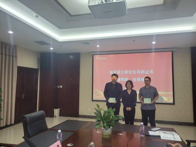 期间,王照兰为新天科技股份有限公司的研发管理总监张俊锋和研发管理委员潘明辉颁发了硕士研究生导师证书。