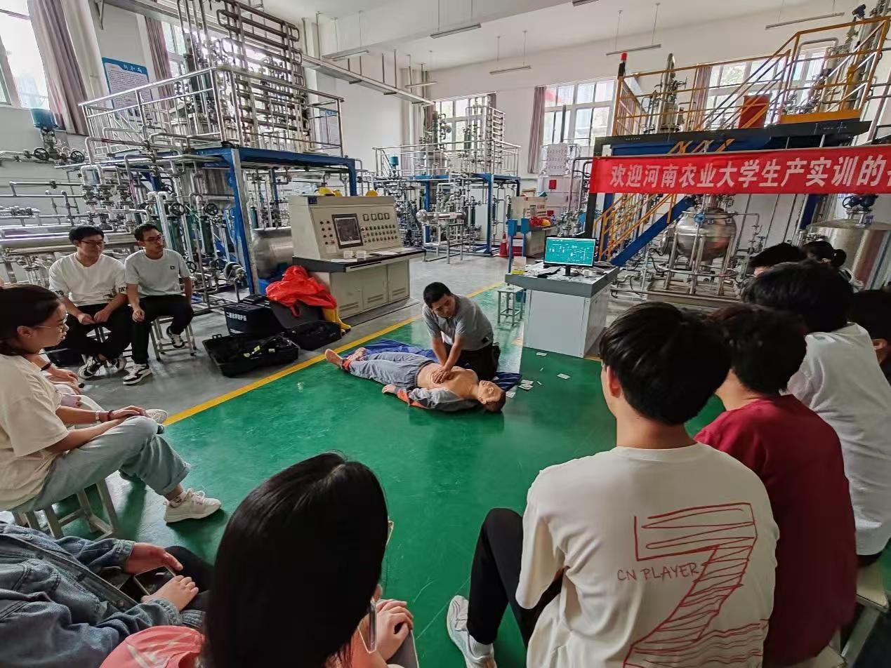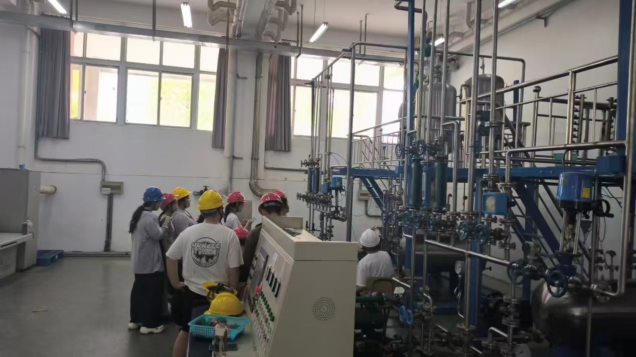 进行化工实训实习。在实训室教师的带领下,学生完成了精馏操作、间歇反应、管路拆装、流体输送等单元操作实训,完成了化工健康、安全与环保实训,参观了纯水生产线。