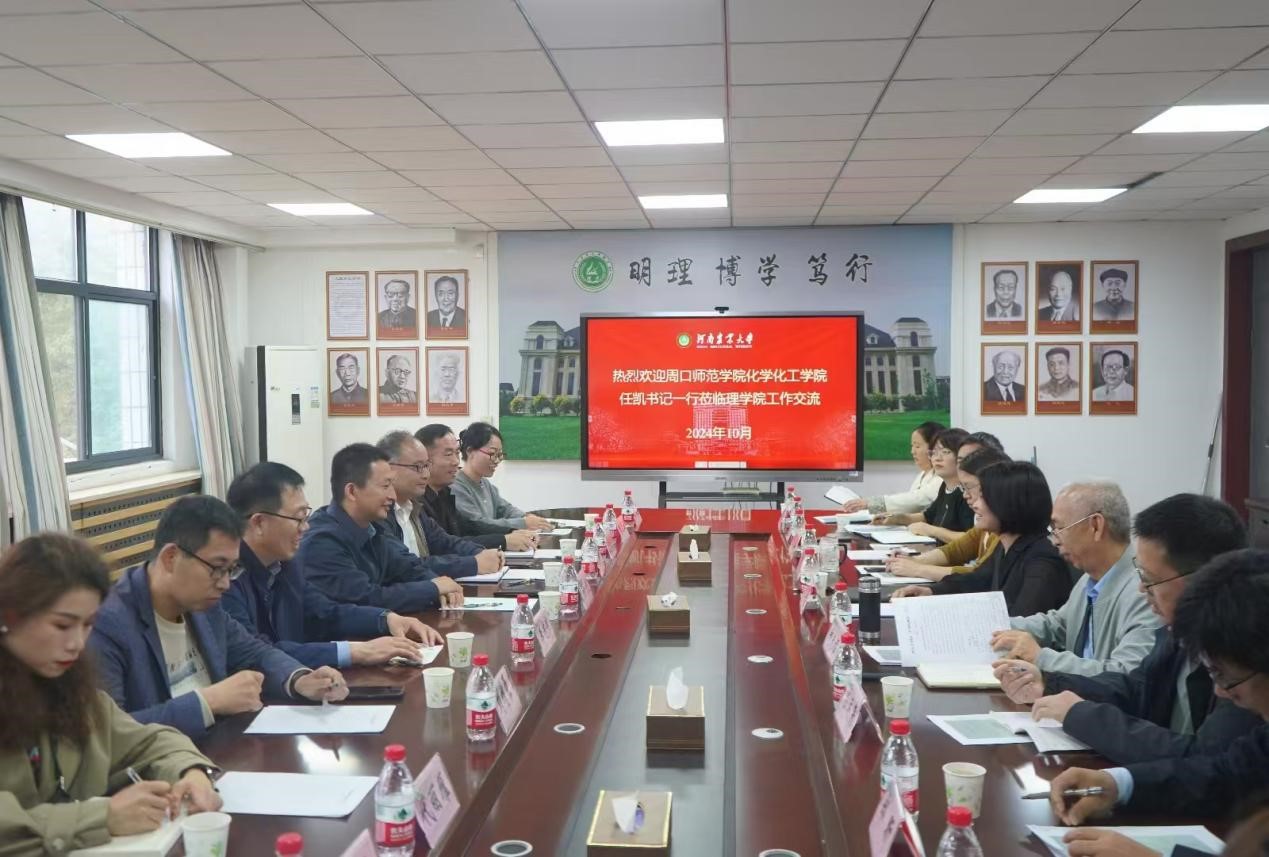 任凯书记对太阳城官网 的热情接待表示感谢,并详细介绍了周口师范太阳城官网 化学化工太阳城官网 的基本情况。随后双方围绕科学研究、高水平师资培养、实验室安全与管理等方面进行了热烈交流和讨论。