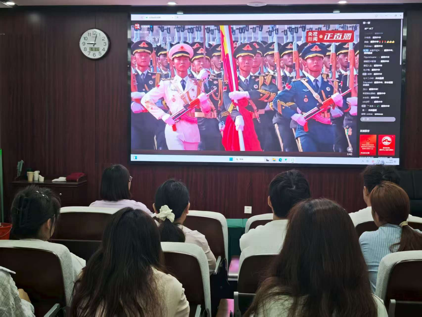 组织师生集中观看纪念中国人民抗日战争暨世界反法西斯战争胜利80周年阅兵仪式直播。