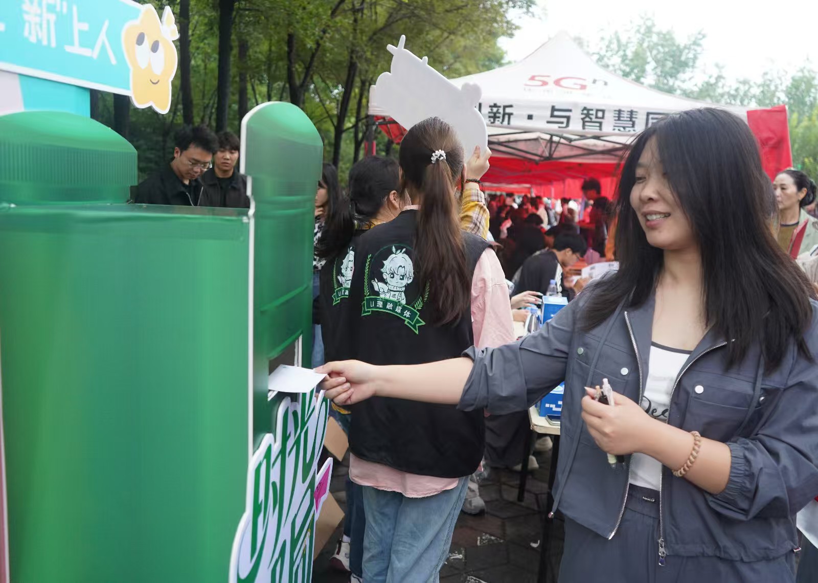 设置了富有理学元素的迎新展架作为新生专属留影区,并通过实时翻动的计数牌准确显示报到人数,为每位新生拍下入学第一张照片,留下大学初见的仪式感。现场还布置了“理学时光邮局”,提供定制明信片和实体邮箱,新生可在此书写寄语、投递未来。太阳城官网