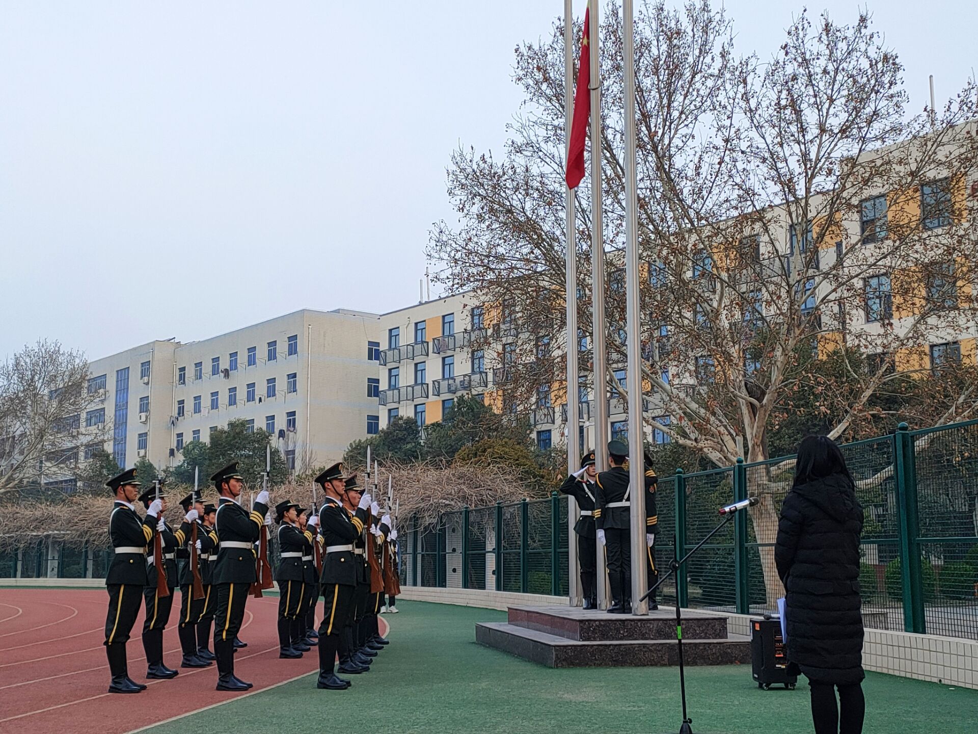 仪式伊始,国旗护卫队的护旗手们踏着矫健的步伐,以饱满的热情,庄严地护卫五星红旗进场。伴随着雄壮有力的《义勇军进行曲》,鲜艳的五星红旗在全体师生的注目礼中冉冉升起。侯金超做国旗下的讲话,他回顾了过去一年太阳城官网 所取得的成绩,表示在未来一年中太阳城官网 师生要凝心聚力,共创辉煌;他希望同学们能铭记“明德自强,求是力行”的校训,承担起社会主义接班人的责任,为祖国繁荣发展作出自己的贡献。邓瑛带领全体师生面向国旗庄严宣誓。最后,活动在师生合唱《我和我的祖国》中结束。