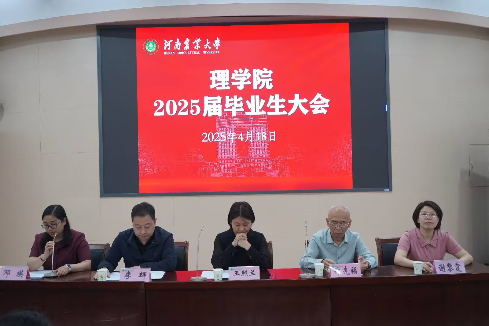 领导班子,系主任,毕业生班主任、辅导员出席会议,全体2025届本科和硕士毕业生参加会议。会议由院团委书记邓瑛主持。