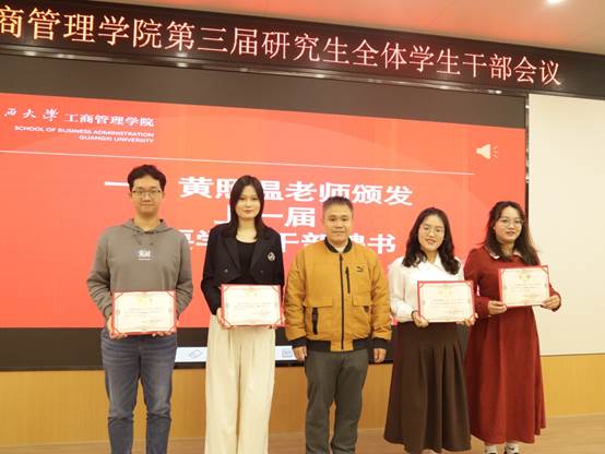 2023-11-24辞旧迎新/太阳城官网 召开第三届研究生全体学生干部会议图:李少华文:高芷萱为对第二届研究生团学组织学生干部进行表彰,促进新一届研究生学生干部之间的交流,发挥学生干部的桥梁作用,更好地开展太阳城官网 研究生工作,11月13日晚上19时,太阳城官网 召开第三届研究生全体学生干部会议。院团委书记马丽娟,团委副书记岑汉成,院党委组织员黄照温,学工组辅导员王乐、张艳红、郁文丹出席指导,第二届,第三届研究生团学组织学生干部、各班班长和团支书。会议共六项议程,会议伊... -
