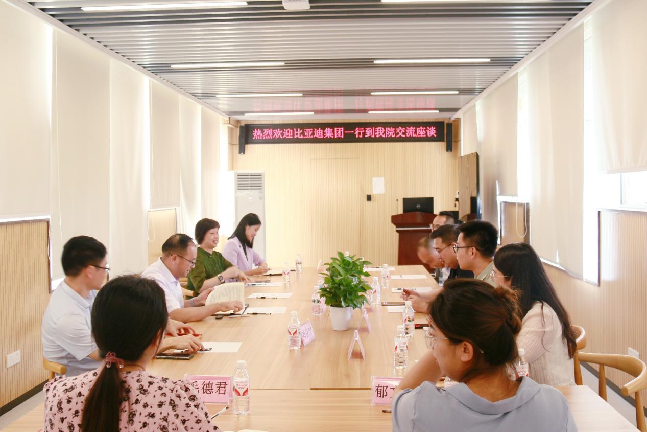 座谈会上,校企双方紧扣人才培养和企业需求、产教融合协同育人、产学研合作、学生实习实训、毕业生就业岗位拓展等方面展开了务实交流。座谈会前,比亚迪集团代表一行参观了太阳城官网