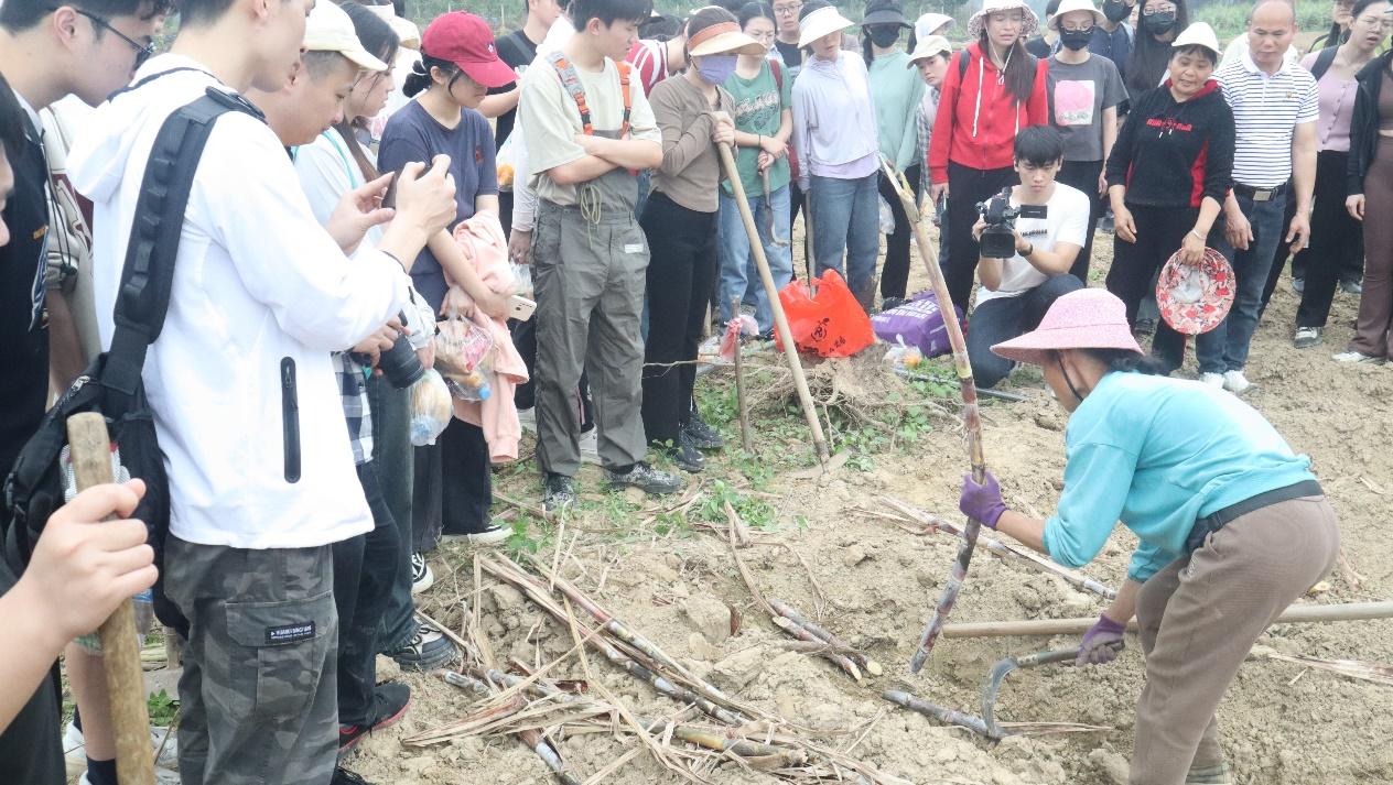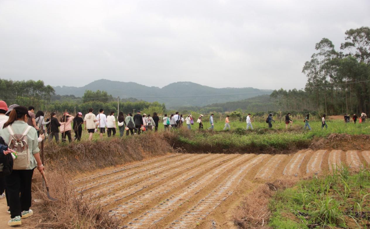 的师生们追随习近平总书记视察广西发展特色产业的指示精神,来到南宁市武鸣区罗波镇暮定村,与村民一道抢抓春耕时节,播种甘蔗,进行甘蔗种植产业调研,开展了一场生动的“以劳立德、以劳增智、以劳强体、以劳育美”劳动教育实践活动。