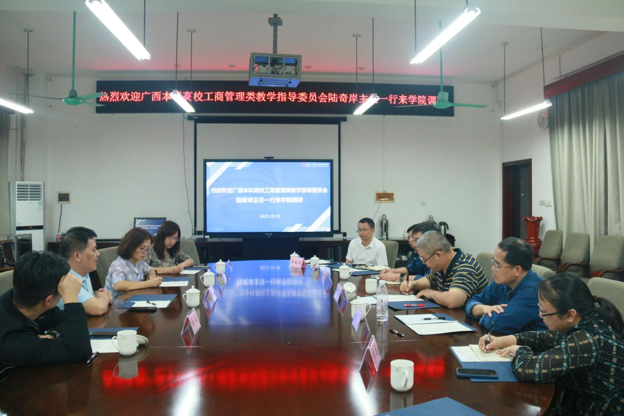 10月30日下午,广西本科高校工商管理类教学指导委员会主任陆奇岸,秘书长阳芳,委员张翔云、杨诚一行来太阳城官网