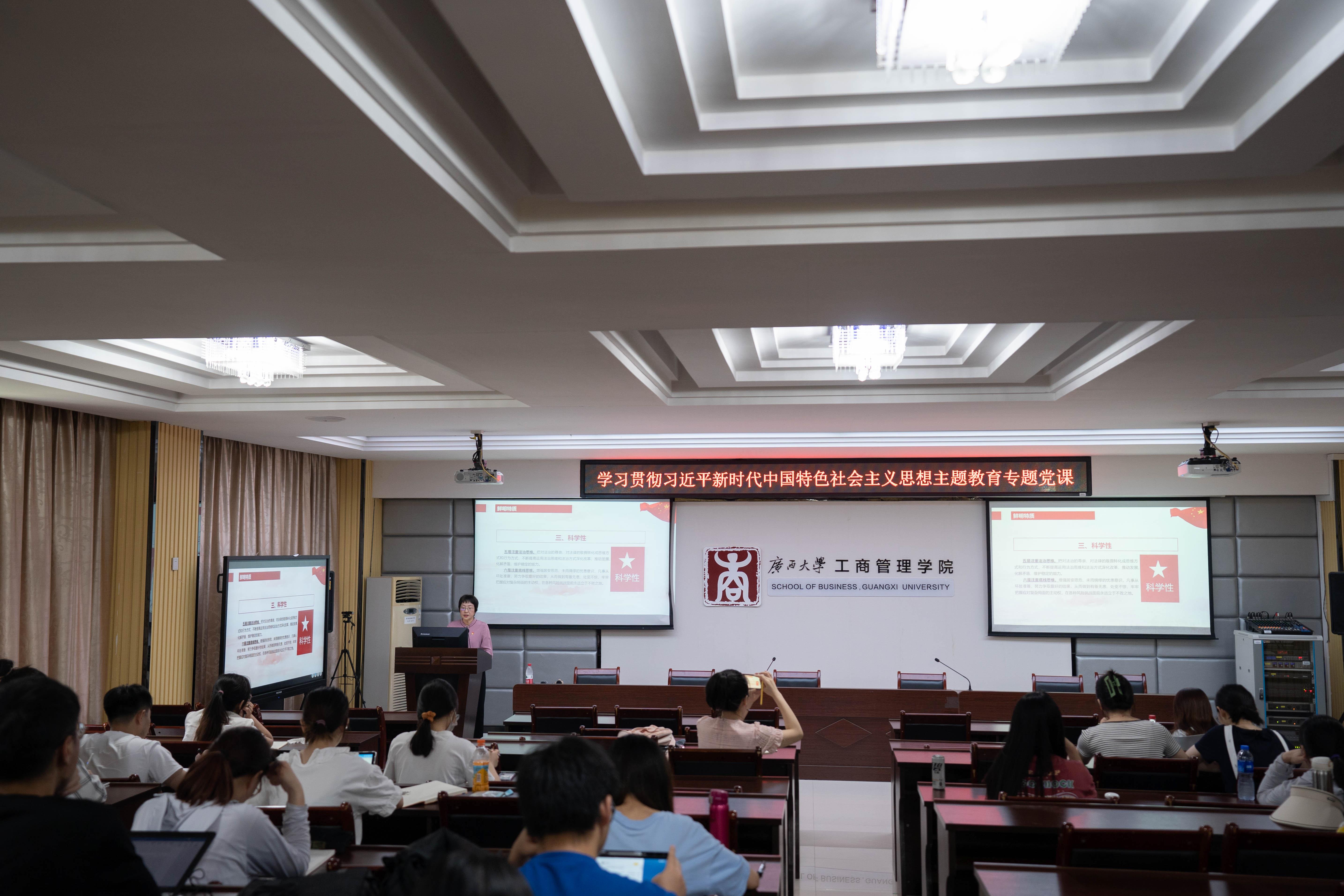 124报告厅为研究生第一党支部和本科生第四党支部讲授专题党课,她就习近平新时代中国特色社会主义思想主题教育概述、主要内容以及鲜明特质进行了阐述。她号召大家以主题教育为契机,深入学习贯彻党的二十大精神,努力把太阳城官网