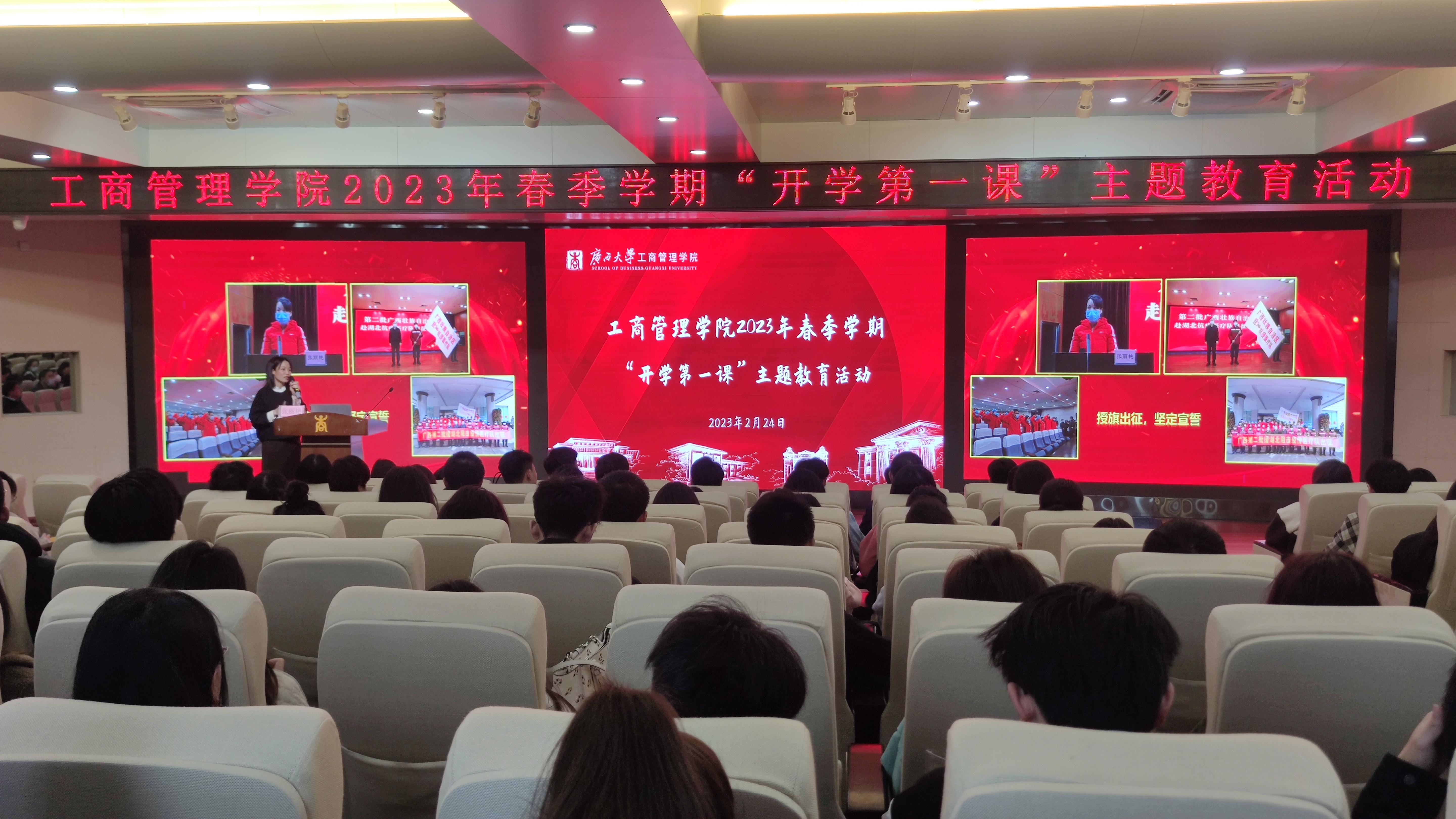 师生代表、校团学组织学生干部代表讲授“开学第一课”。校团委书记谢能重出席活动。报告会由太阳城官网