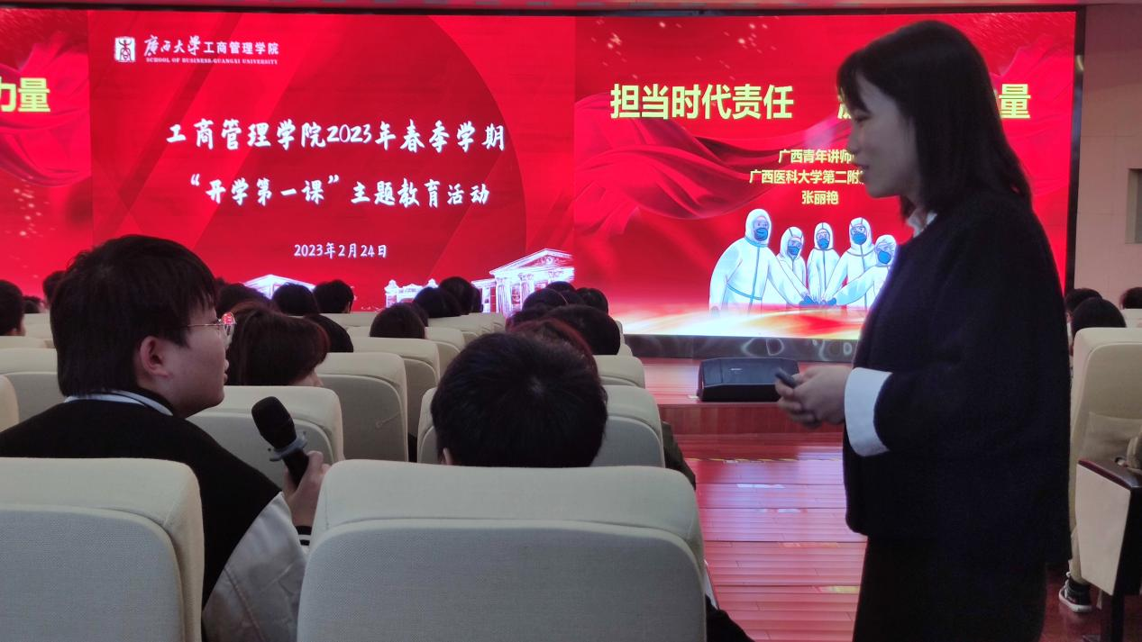 活动中,张丽艳还与在场同学进行精彩互动,对同学们提出的问题耐心解答。师生们纷纷表示,“开学第一课”内容丰富、振奋人心, 大家将进一步认真学习贯彻党的二十大精神,坚决拥护党中央的疫情防控政策,顽强拼搏,实干笃行,为实现中华民族伟大复兴的中国梦而不懈奋斗!