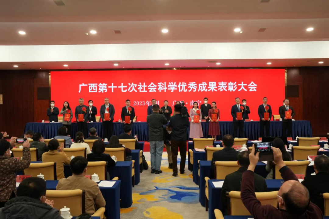 作为获奖代表,朱帮助教授和刘民坤教授应邀出席2023年1月10日在南宁召开的广西第十七次社会科学优秀成果表彰大会并领取了获奖证书。