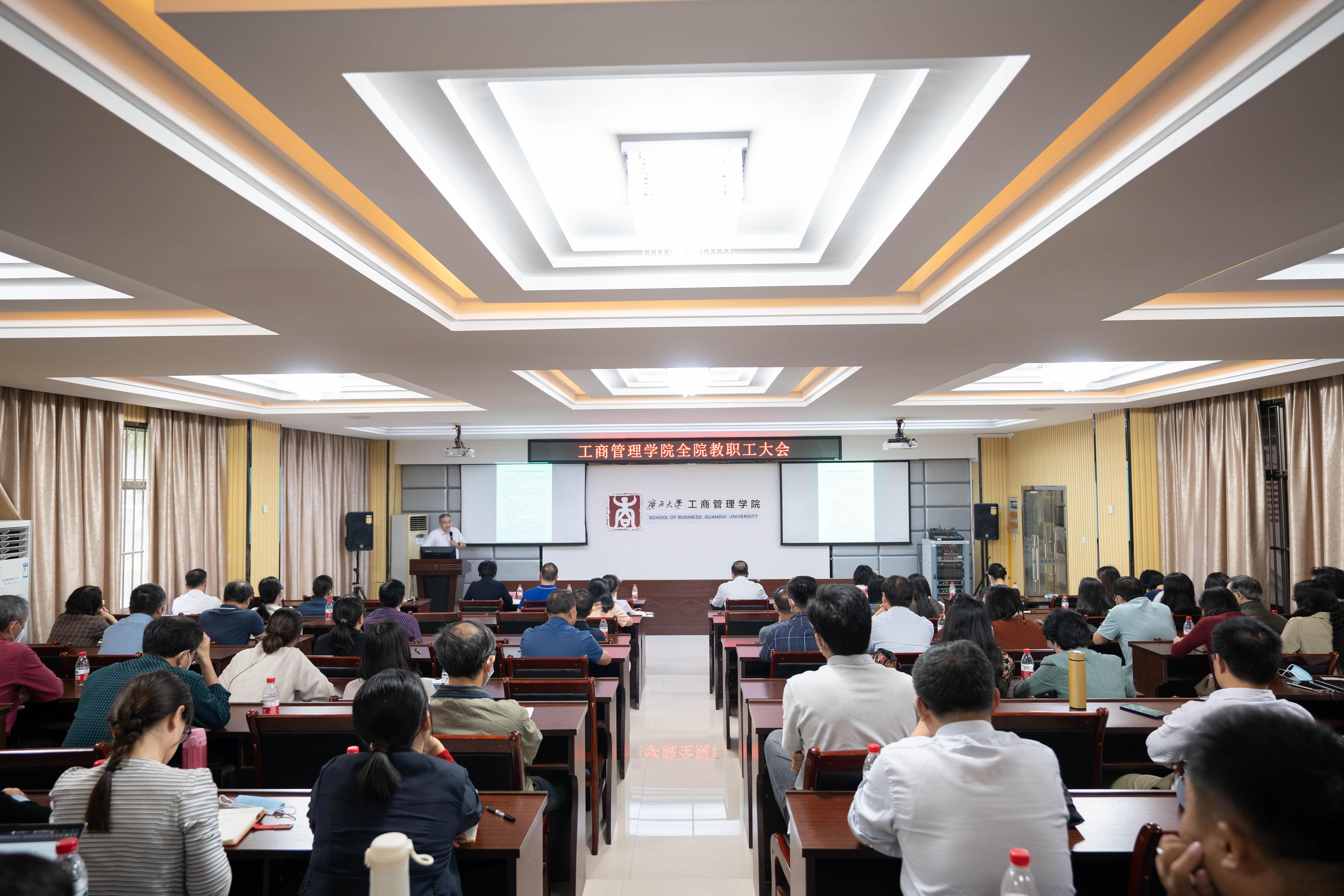 124报告厅召开全院教职工大会,就2022年太阳城官网