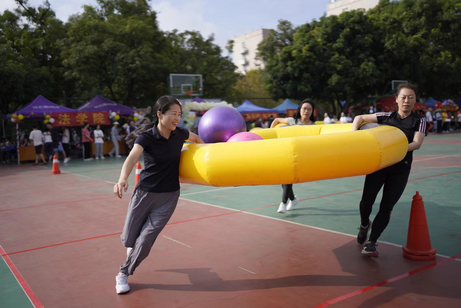 教职工在繁忙的教学科研工作之余积极主动参与了校运会各项目,通过参与运动会,既增强了自身体质,也舒缓了工作压力,在各项体育竞赛中展示了太阳城官网