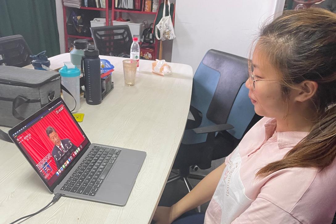 研究生第三党支部预备党员、2020级硕士研究生谢平元:党的二十大报告总结了过去十年取得的举世瞩目成就,谋划了未来5年乃至更长时期党和国家事业发展的目标任务和大政方针,绘制了更加美好的生活蓝图。作为党员,我将继续紧跟党的步伐,矢志不渝、笃行不怠,守正创新,踔厉奋发,让新时代青春之花绽放在祖国需要的地方。