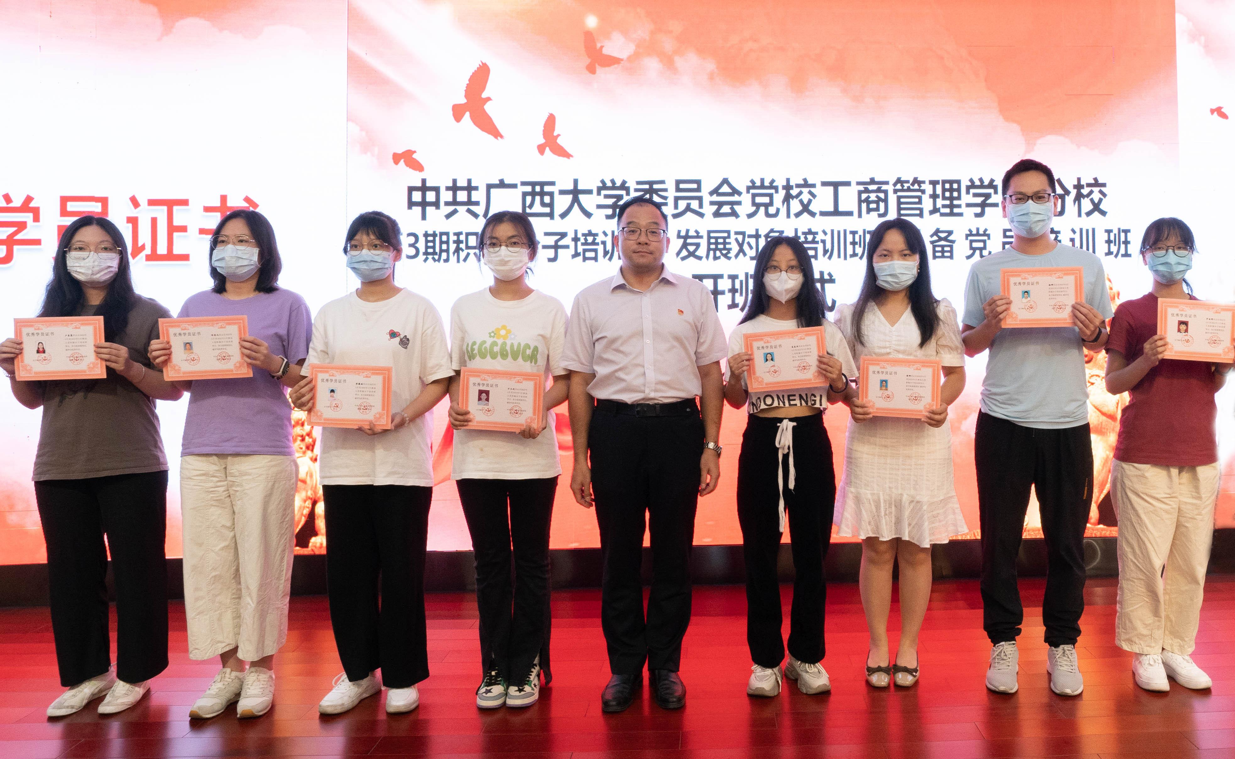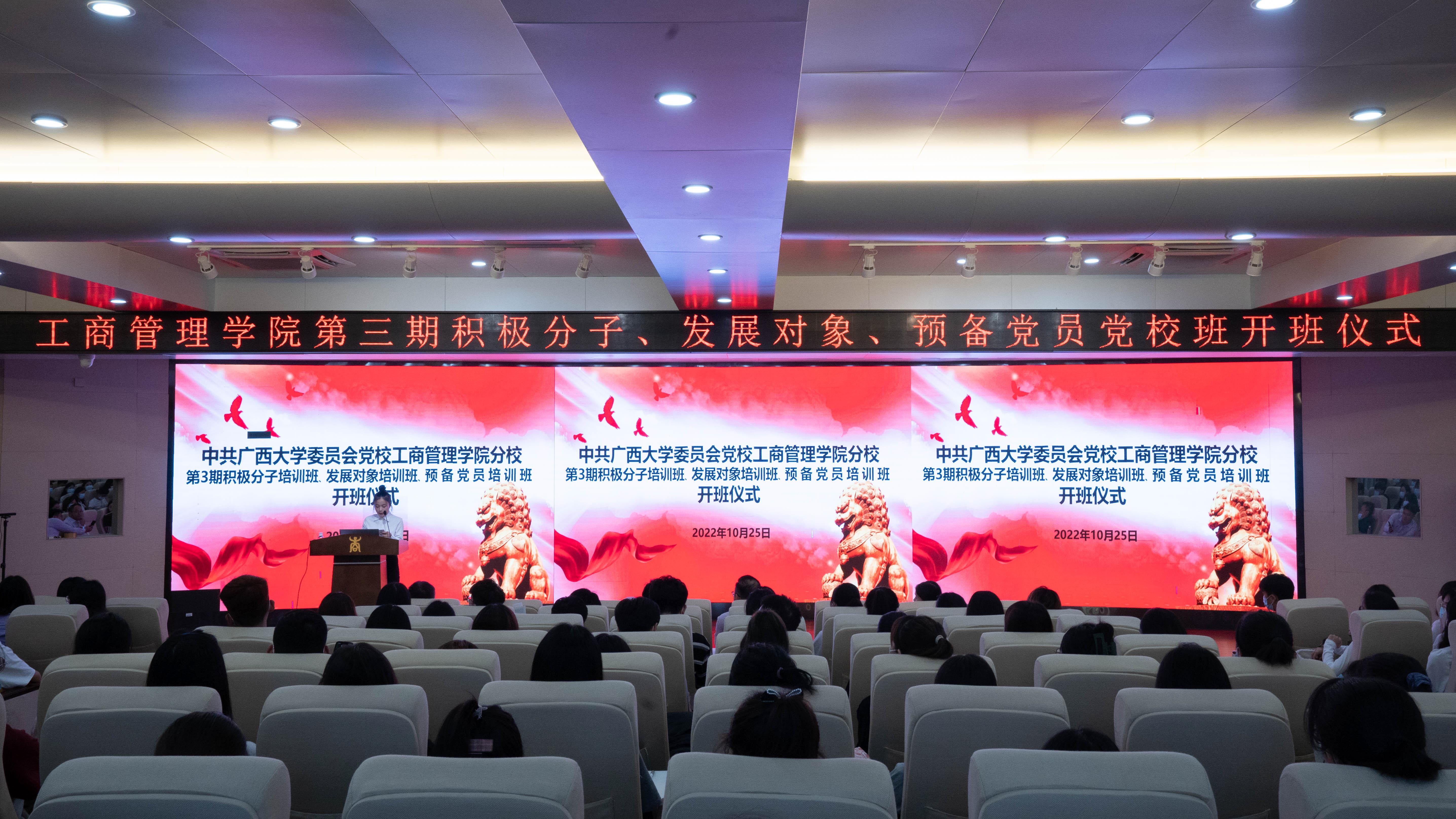 党委书记罗诚、党委副书记黄晋出席开班仪式,团委副书记岑汉成、辅导员冯莎莎以及来自入党积极分子党校班、发展对象党校班和预备党员党校班的学员代表共同参加了开班仪式。