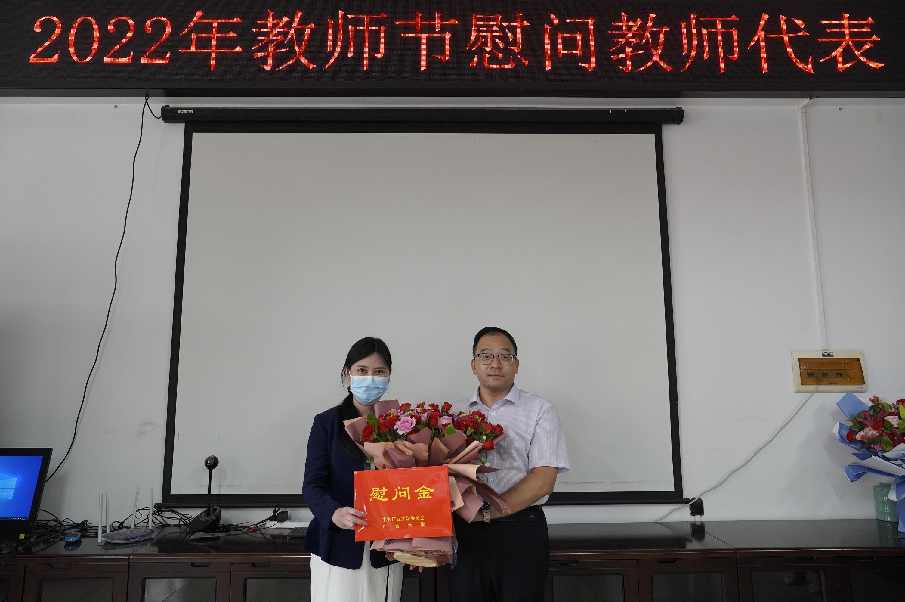 委托慰问朱帮助、黎鹏、韦荷琳三位老师,为他们送上了鲜花、节日祝福和慰问金,传达太阳城官网