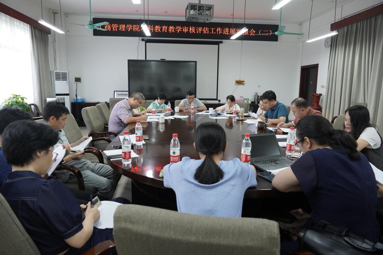 420会议室召开本科教育教学审核评估工作推进会。会议由院长朱帮助主持。院党委副书记黄晋,副院长申韬、刘民坤,以及各系、各部门负责人参会。
