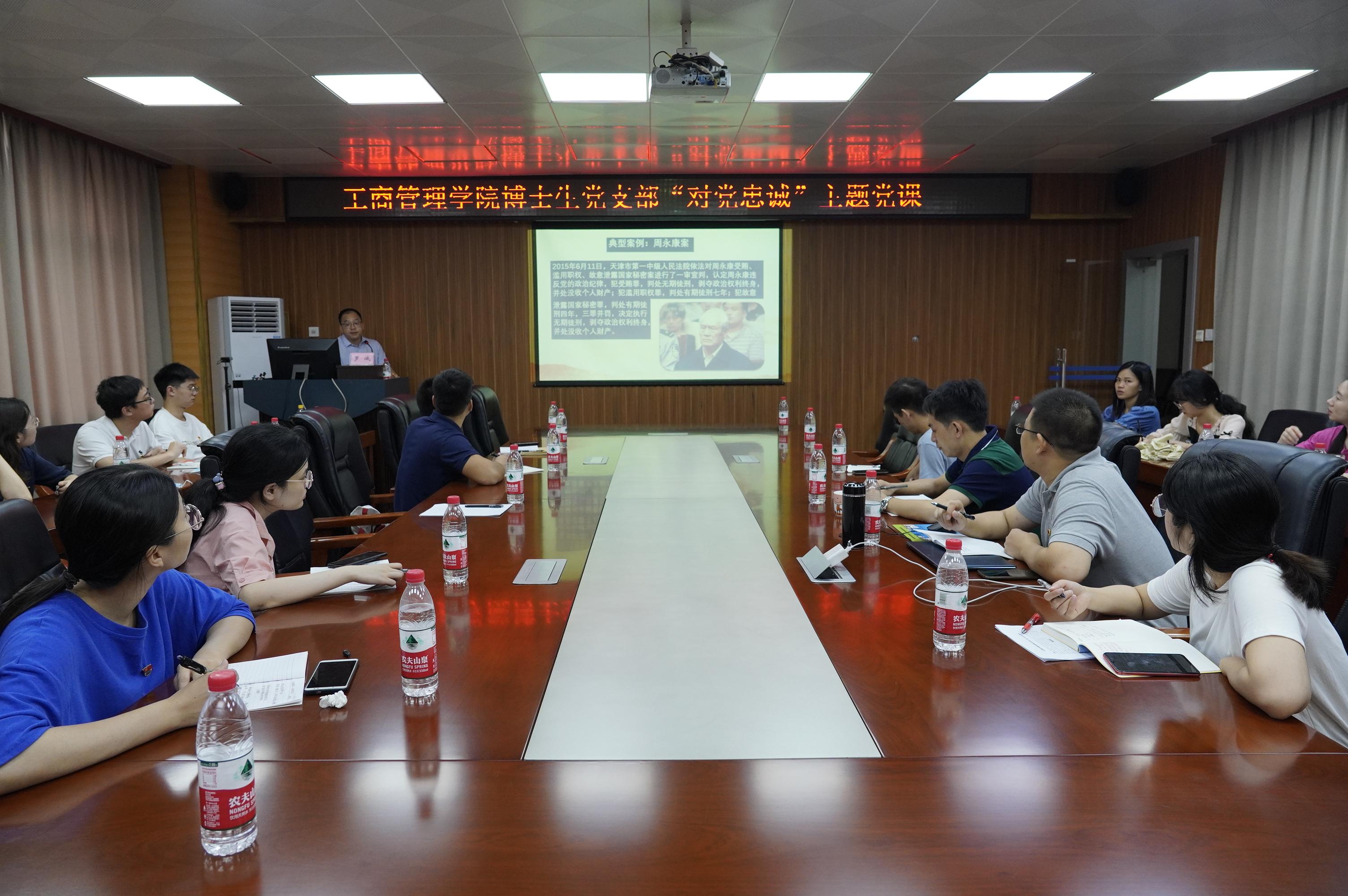 党委书记罗诚以“坚定理想信念,永远对党忠诚”为主题为博士生党支部上了一堂生动的党课,研究生第四党支部和其他支部部分支委一同参加。罗诚书记从“对党忠诚是党员的根本政治担当”、“检验对党忠诚的四条标准”和“共产党员如何落实对党绝对忠诚”三个方面,结合大量生动的案例全面阐释新时代共产党员如何理解与落实对党忠诚。他强调,忠诚是党员必须具备的优秀品格,是每个党员入党宣誓的庄严承诺,每位党员要牢记于心,铭刻于骨。讲课结束后,罗诚书记还和博士生党支部党员进行面对面地“和书记聊思想”,了解党员同学们思想、学习、生活方面情况,听取了同学们的意见和建议,并对同学们提出的问题和困惑一一提出建议与意见。
