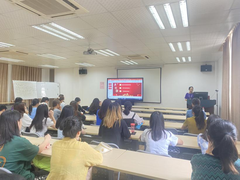 廖东红副院长对教工行政党支部、研究生第一党支部和本科生第四党支部联合开展主题党课教育