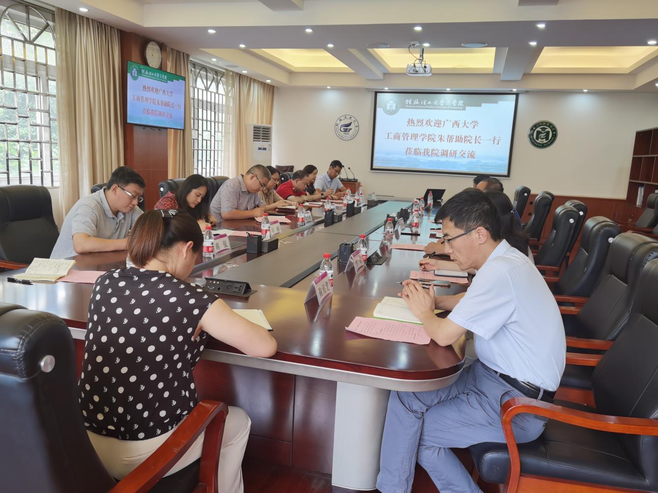 朱帮助院长带队一行8人赴桂林部分高校走访调研,就新时代背景下的学科建设、人才培养、团队建设、管理机制等问题进行具体交流。广西师范大学经济管理太阳城官网