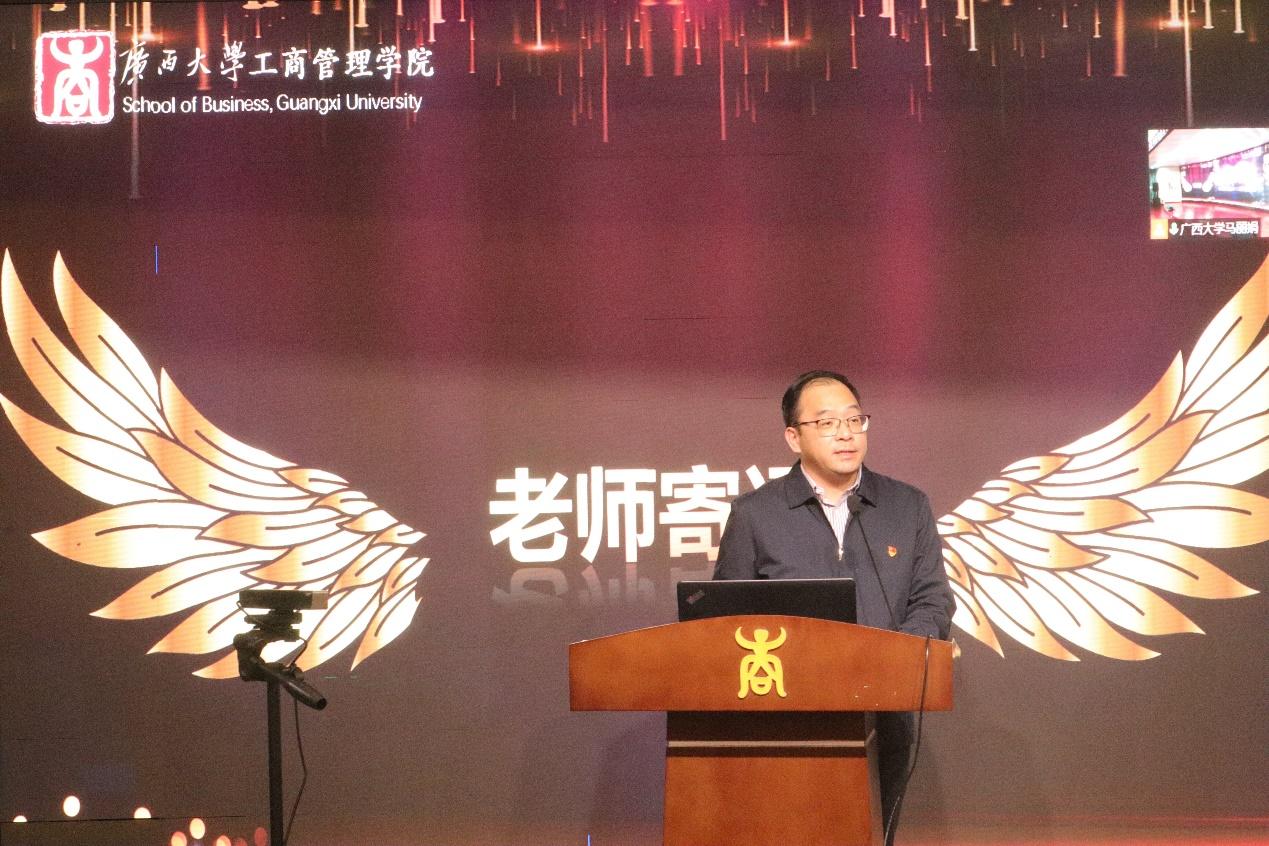 党委副书记黄晋,研究生管理中心、组织员办、教学办等部门负责人,学工组全体老师和上海高顿教育培训有限公司广西分校的嘉宾代表以及学生代表共43人参加线下会议,1200余名师生线上观看。
