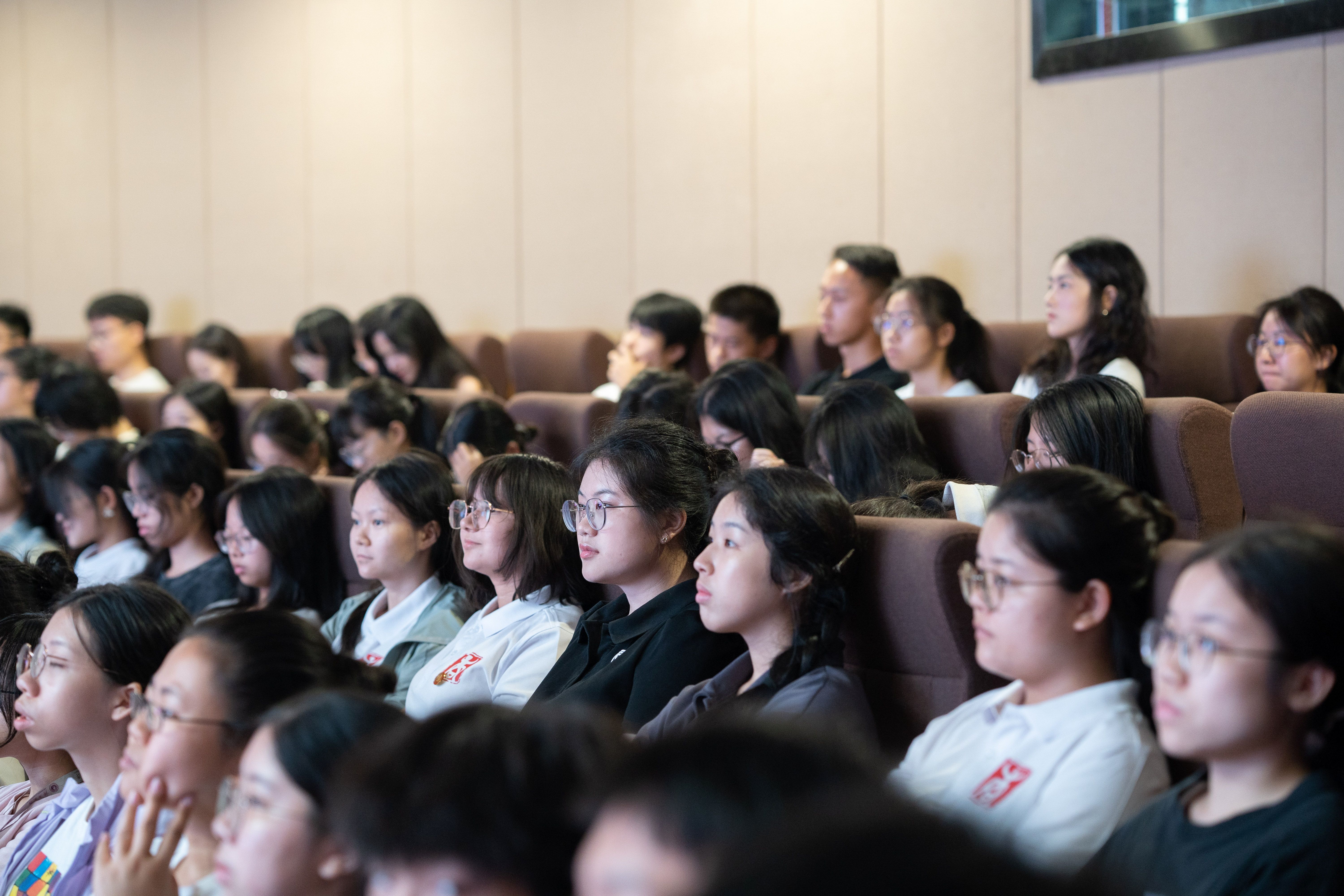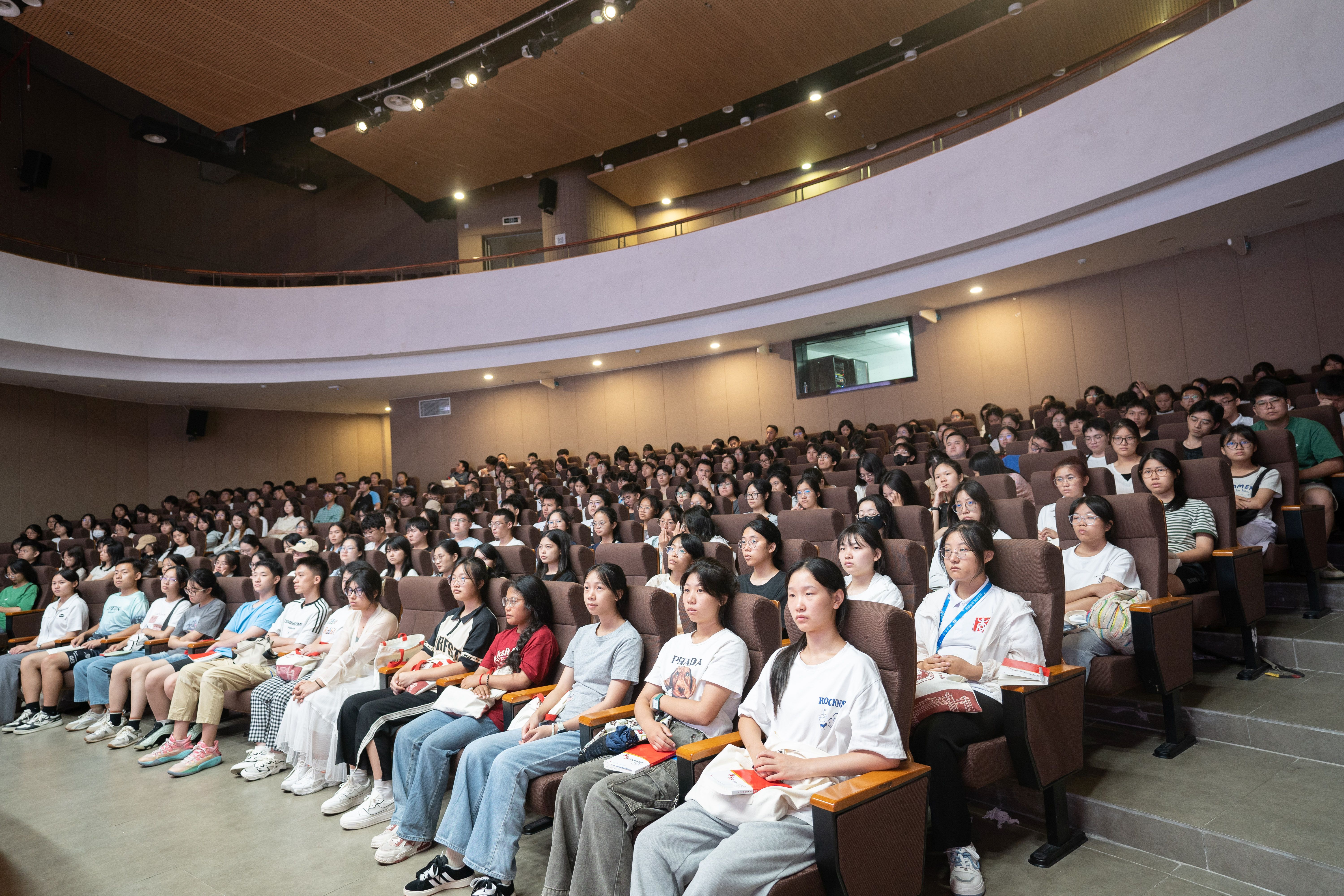 党委书记黄晋主讲,院党委副书记肖克宁、组织员黄照温、学工组辅导员郁文丹、管雅娣与全体新生一同参与学习。