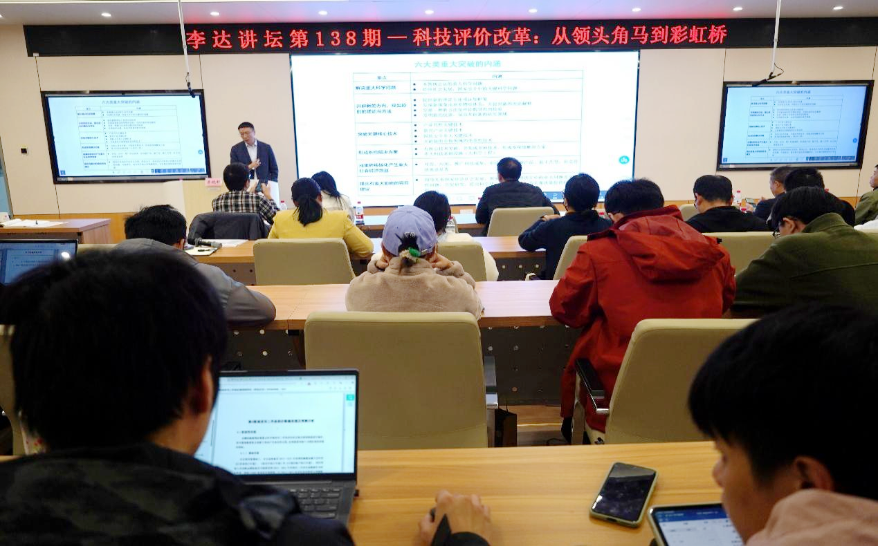 第138期“李达讲坛”,在122报告厅为师生们带来题为“科技评价改革:从领头角马到彩虹桥”的学术报告。太阳城官网