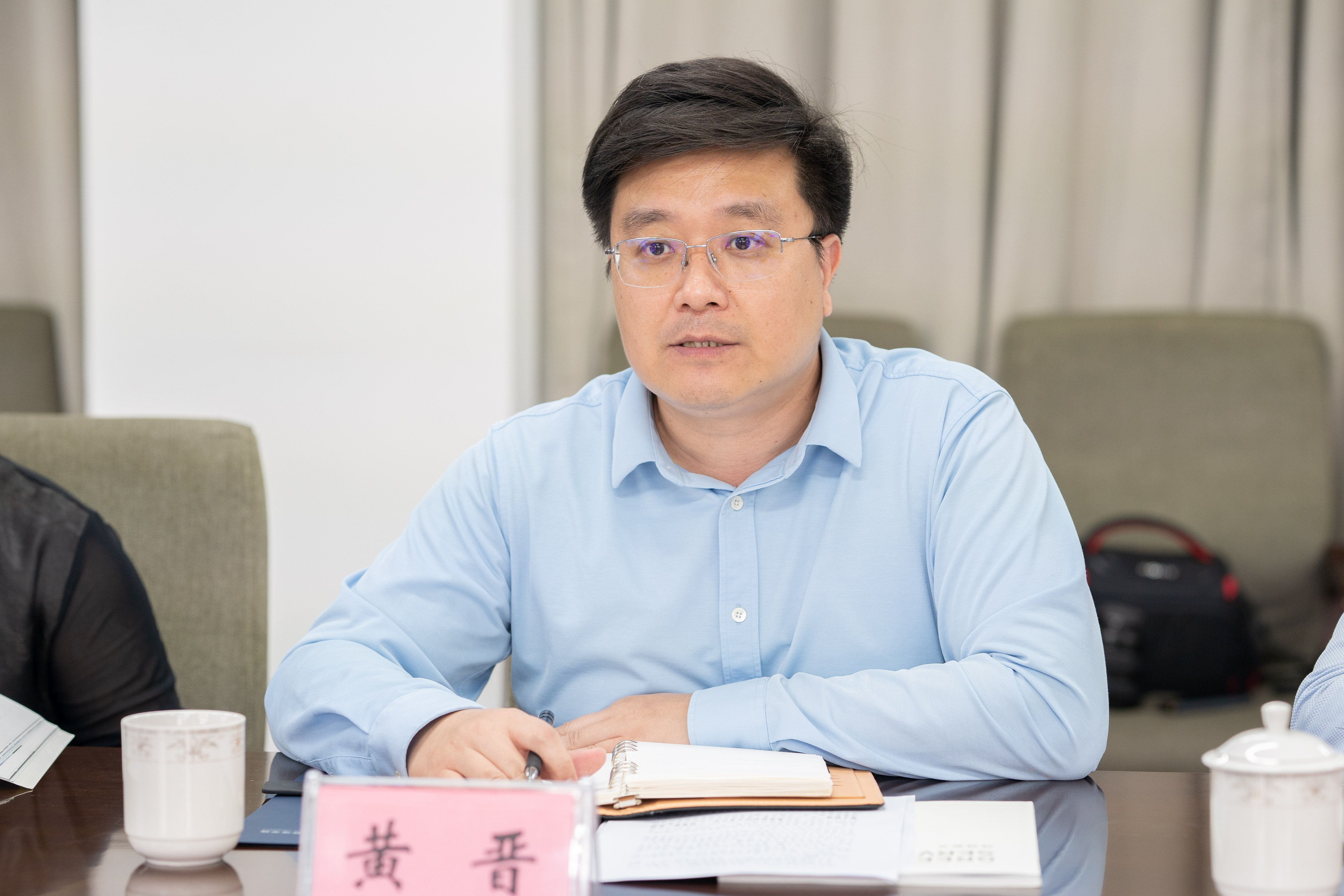 党委书记黄晋,党委副书记肖克宁、副院长朱少英与来宾在420会议室座谈。