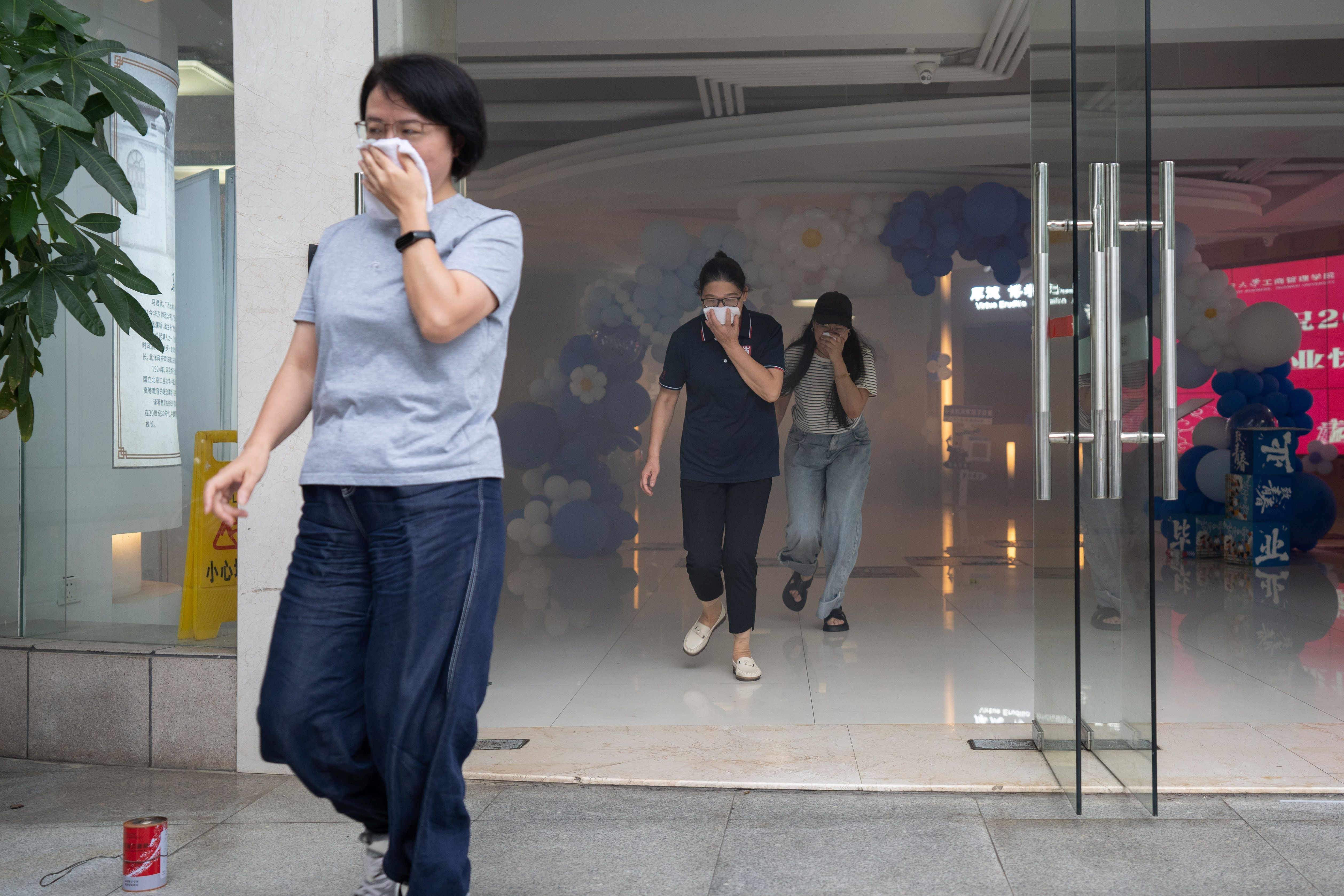 应急疏散演练环节,师生按指定路线弯腰低姿迅速、有序撤离,穿过模拟烟雾区,安全到达太阳城官网