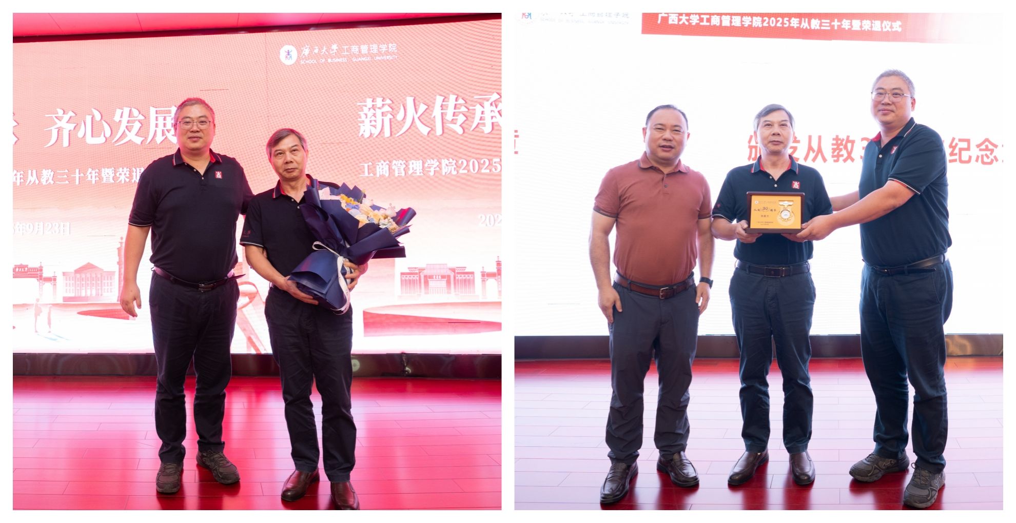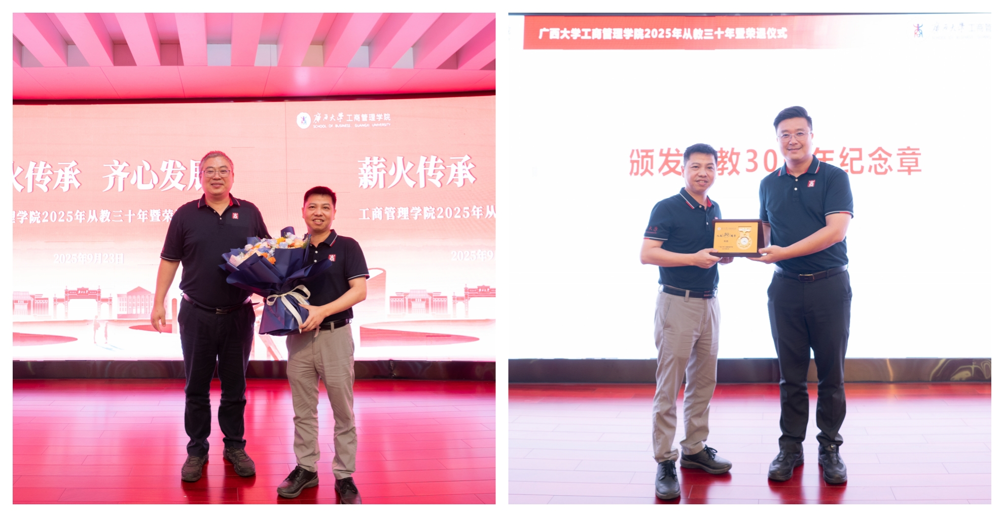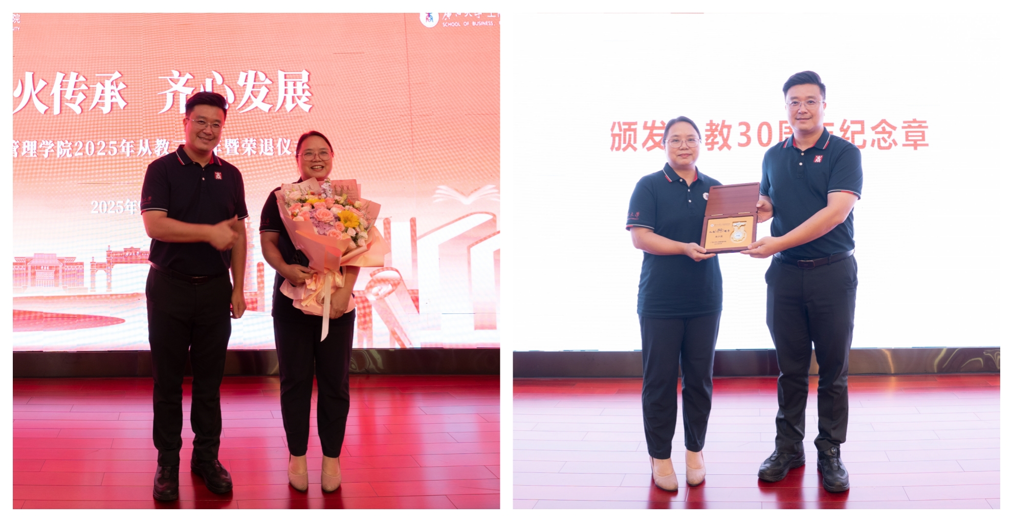 科研平台建设管理处副处长刘民坤与全院教职工欢聚一堂,举行2025年从教三十年暨荣退仪式,向五位教育工作者致以崇高敬意。