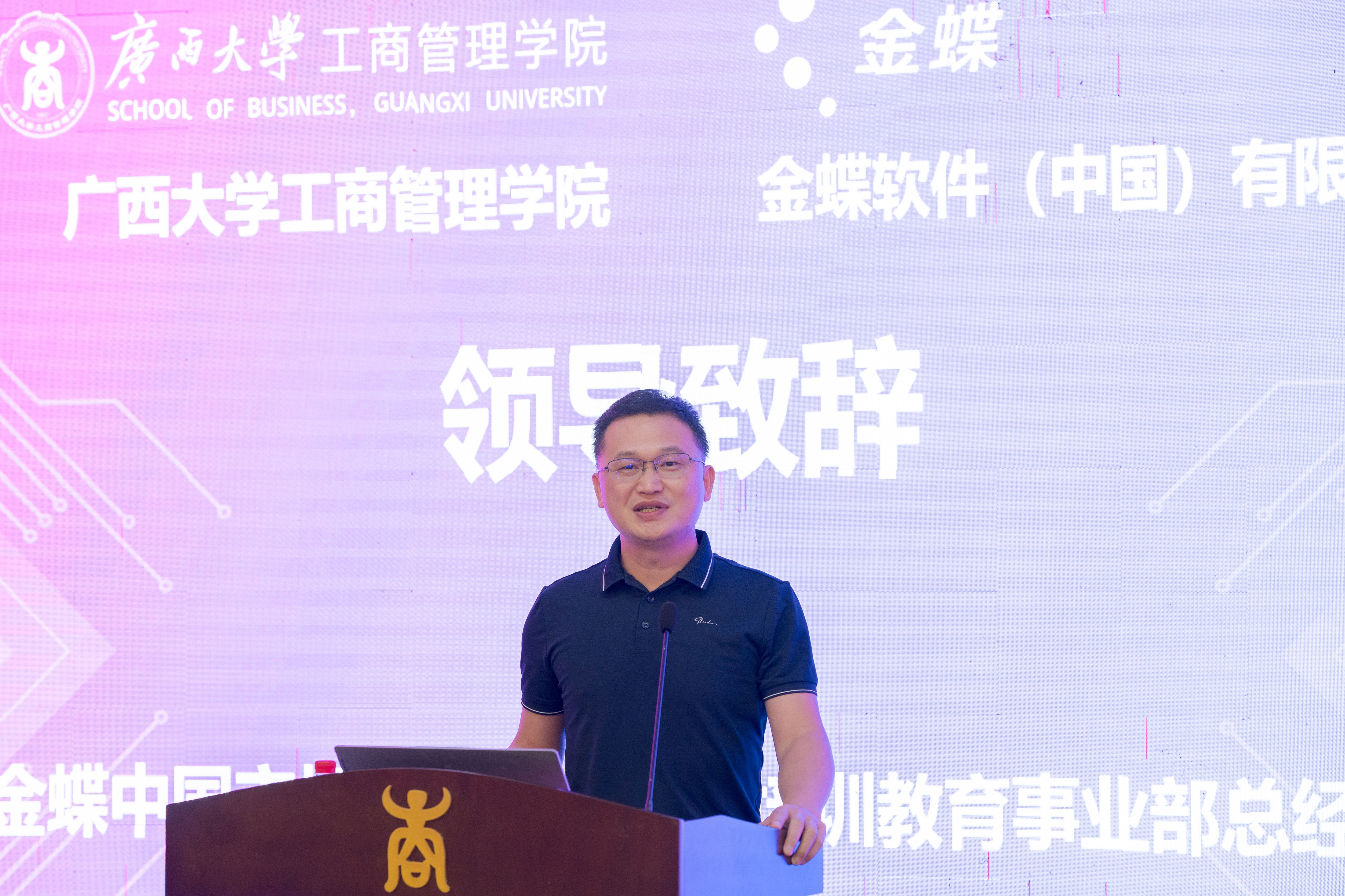 金蝶广西分公司市场部总监游阳、解决方案部高级顾问邓旭、院校业务经理韦晓春,太阳城官网
