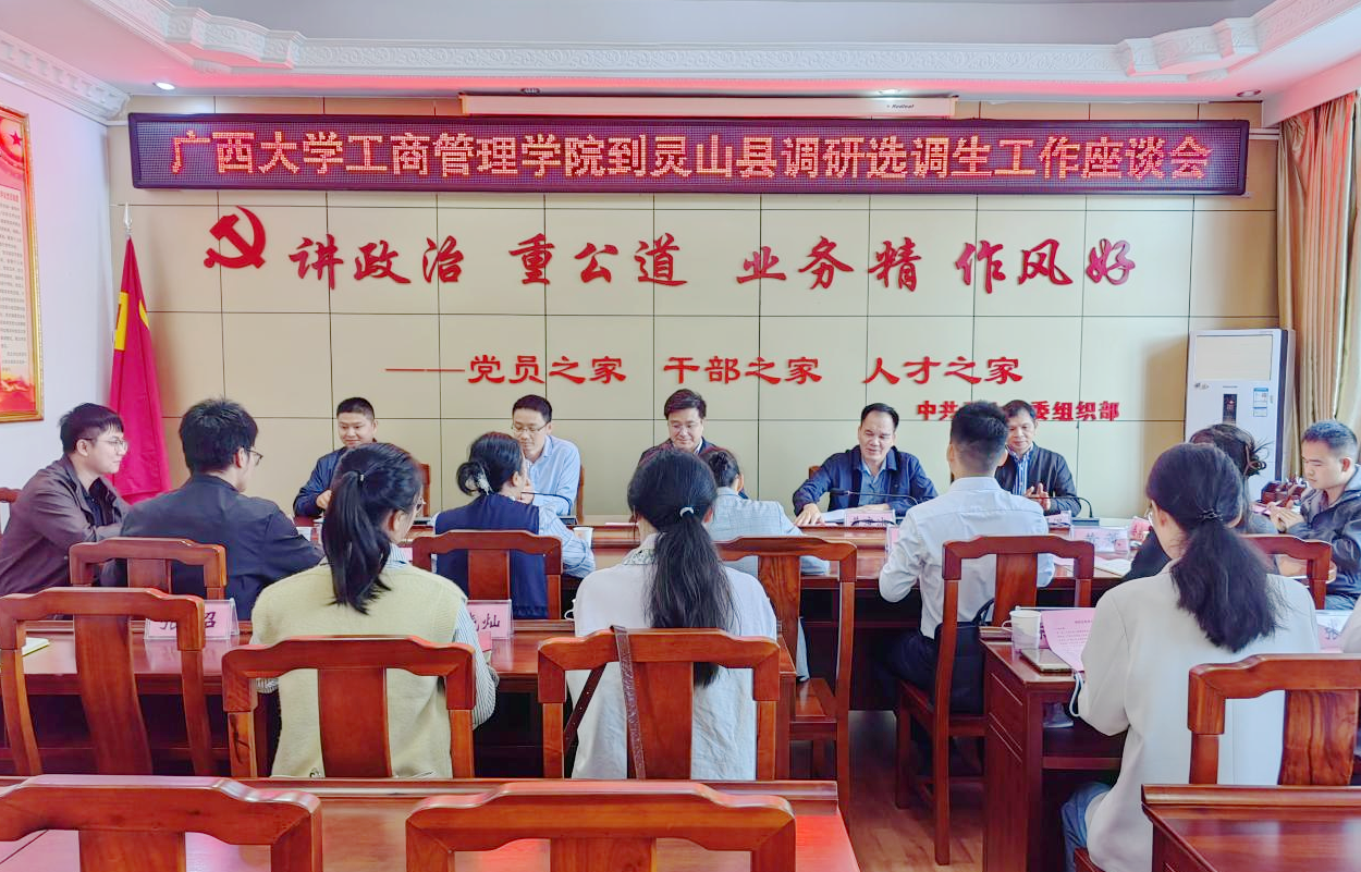 选调生的基本情况,她表示,西大毕业的选调生在基层工作表现突出,展现出“政治素质过硬、工作扎实肯干、服务意识强”的素质能力;她立足灵山县经济发展实际,介绍了灵山县在人工智能赋能现代农业、推动特色农业经济发展等方面的经验做法,希望以此次调研为契机,深化校地合作,共育选调生为灵山县经济发展贡献力量。
