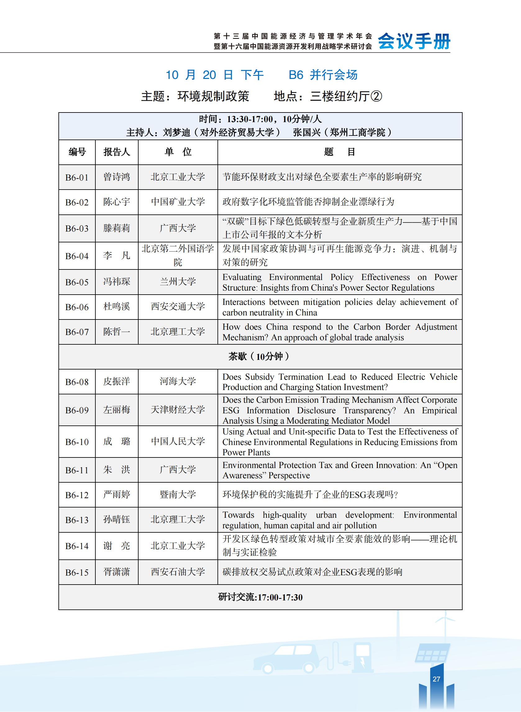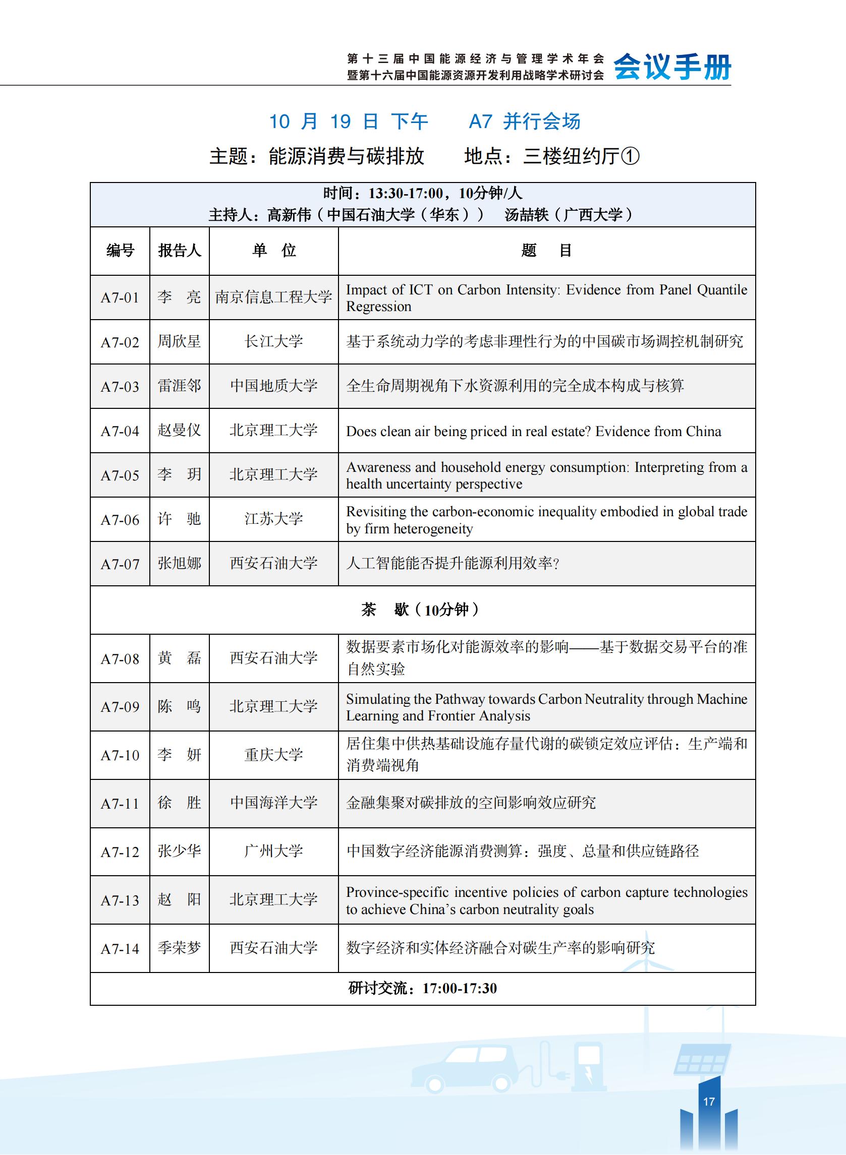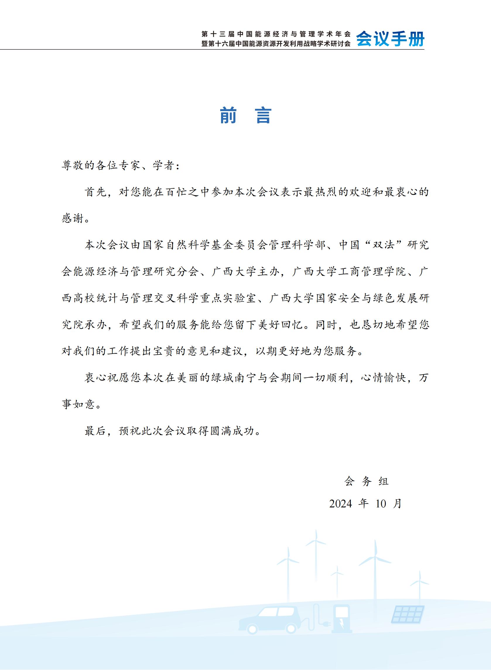 第十三届中国能源经济与管理学术年会暨第十六届中国能源资源开发利用战略学术研讨会会议手册